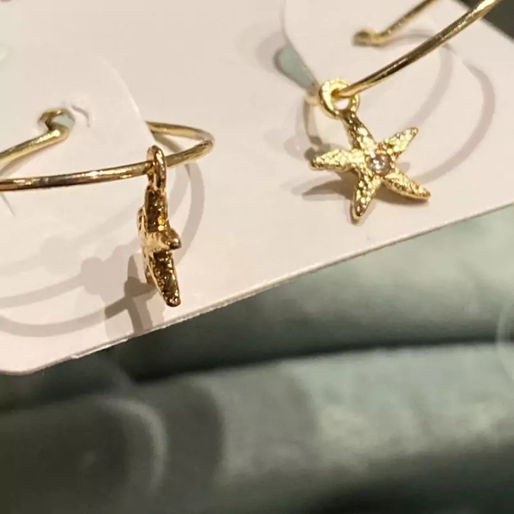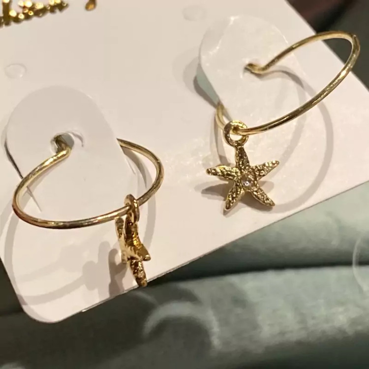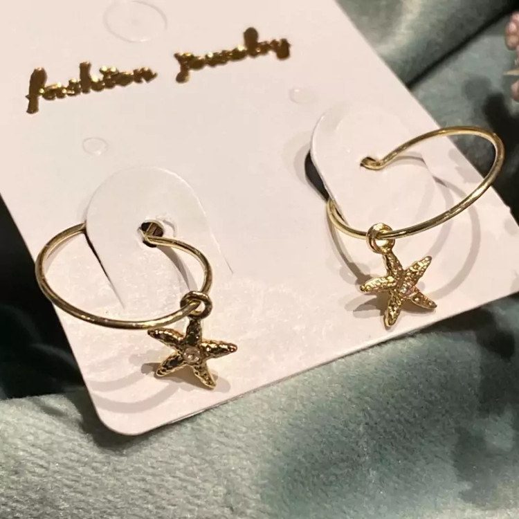 گوشواره ستاره دریایی تک نگین گوشواره میخی طلایی