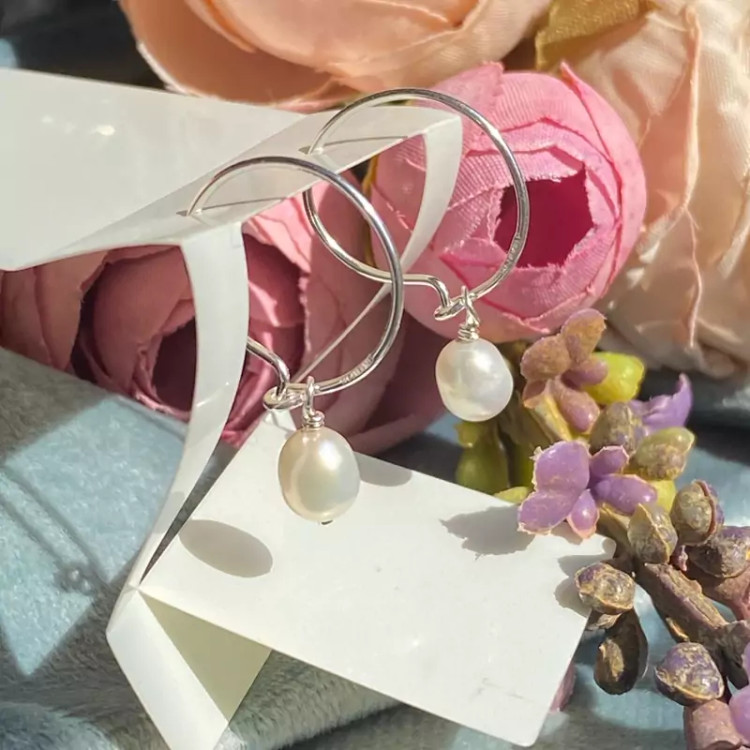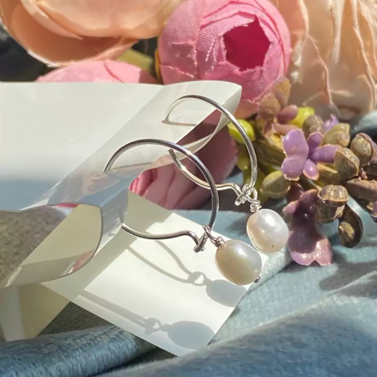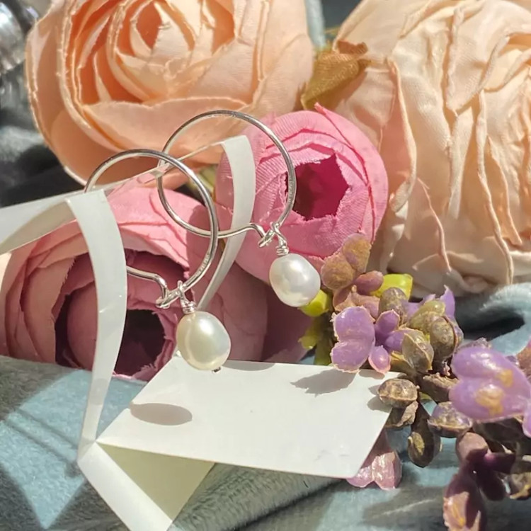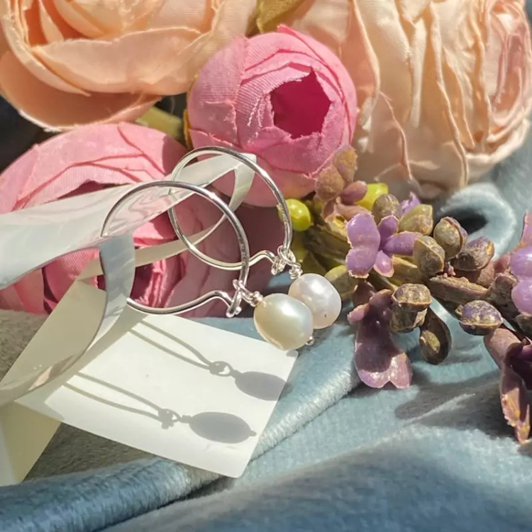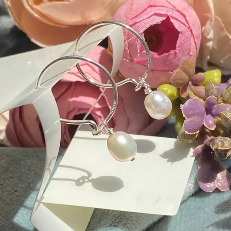 گوشواره نقره حلقه ای گوشواره نقره حلقه ای جدید دخترانه با آویز صدف