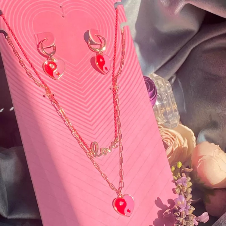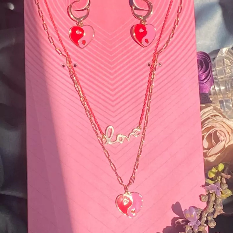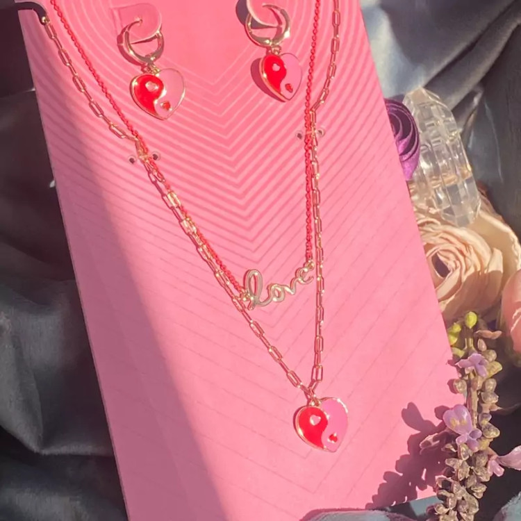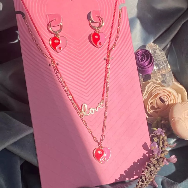 نیمست قلب با دو گردنبند ست گوشواره و گردنبند مناسب کادو تولد