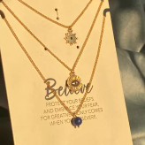 گردنبند زنانه مدل چشم نظر سه لاین طلایی وارداتی شیک و ضد حساسیت