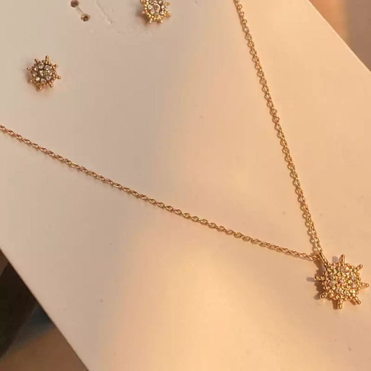 نیمست ست گوشواره و گردنبند نگین دار بسیار ظریف و زیبا مناسب کادو تولد