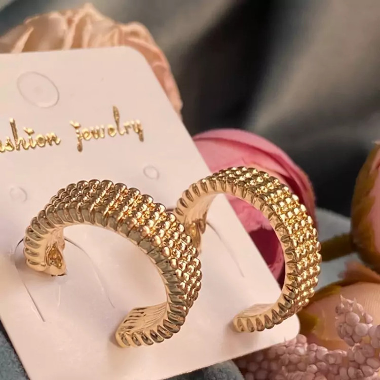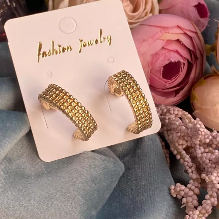 گوشواره نیم حلقه ای طلایی گوشواره مجلسی جدید دخترانه شیک مناسب کادو تولد
