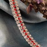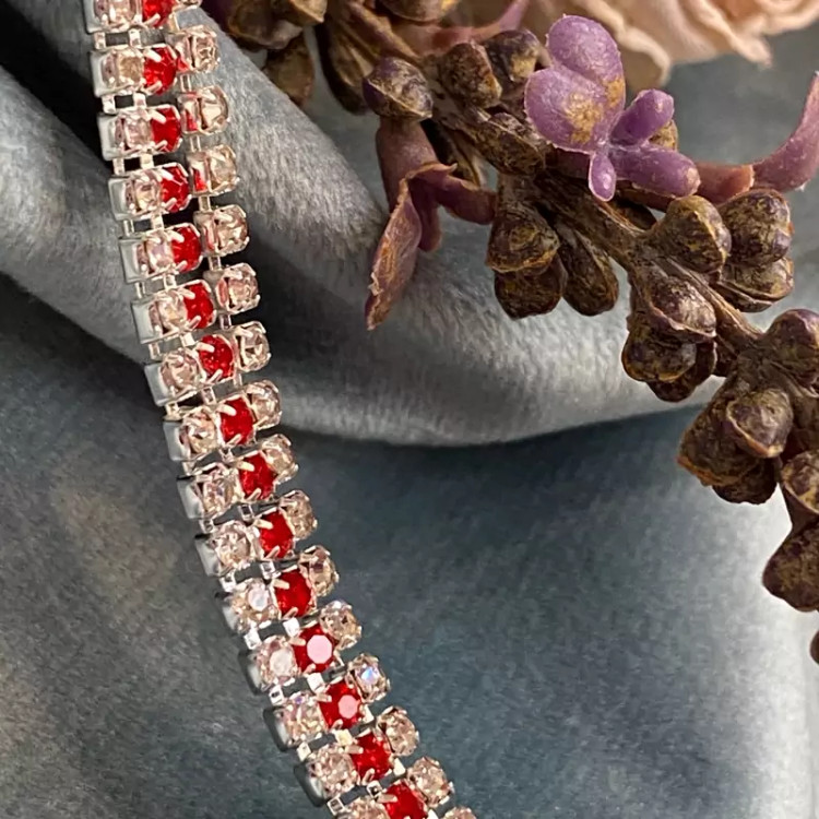 خرید دستبند مجلسی تمام نگین دخترانه نگین نقره ای و قرمز زنانه شیک وارداتی با قیمت مناسب و ارسال فوری