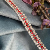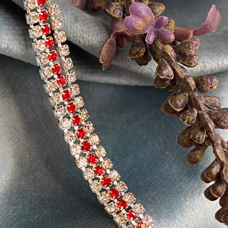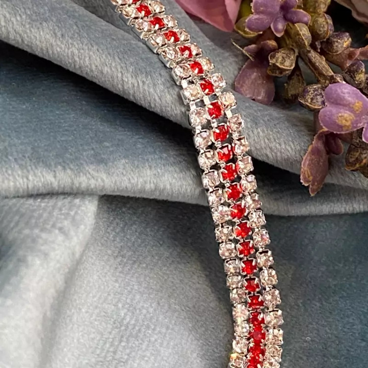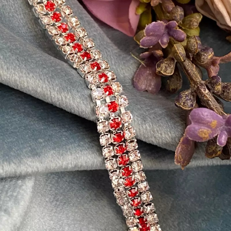 دستبند سه لاین تمام نگین با نگین های قرمز و نقره ای اکسسوری دخترانه برای کادو تولد