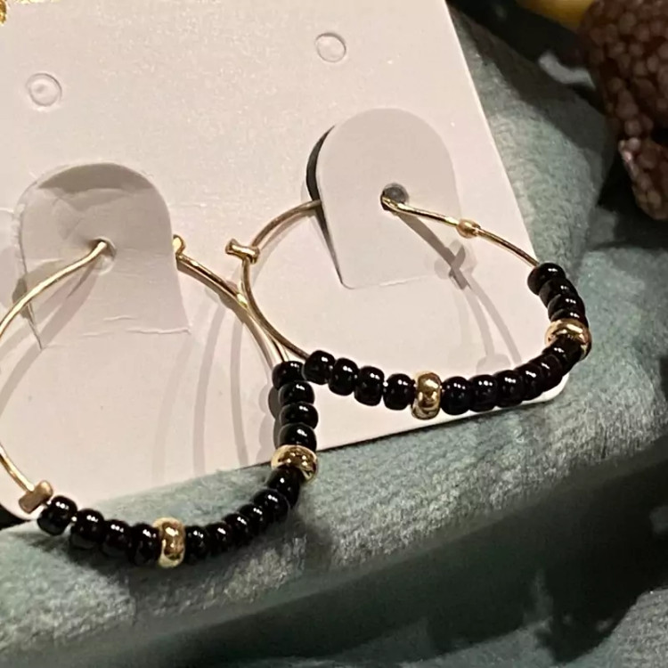 گوشواره حلقه ای ظریف با مهره های ریز مشکی