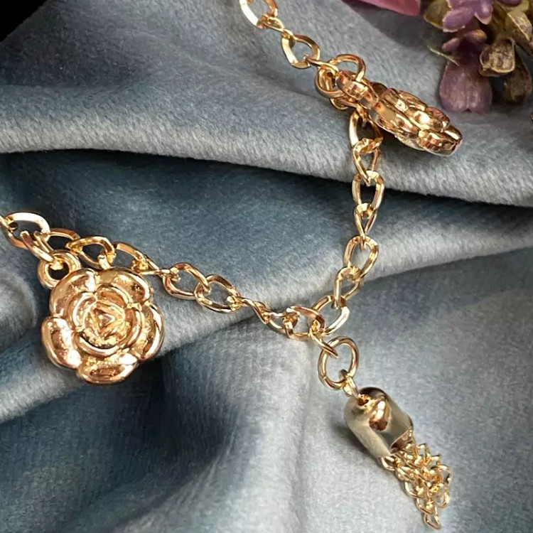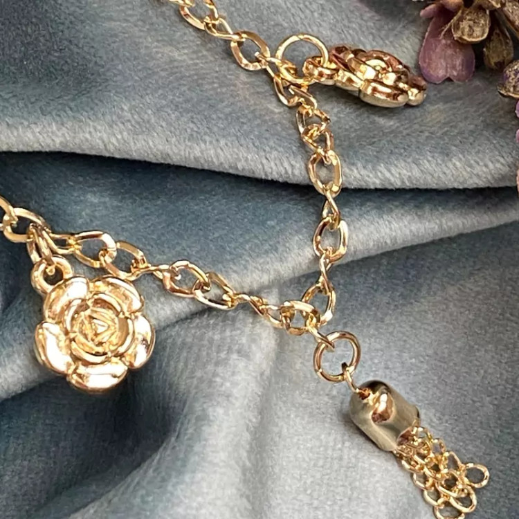 دستبند طرح گل رز دستبند طلایی جدید زنانه و دخترانه اکسسوری دخترانه جدید برای کادو تولد