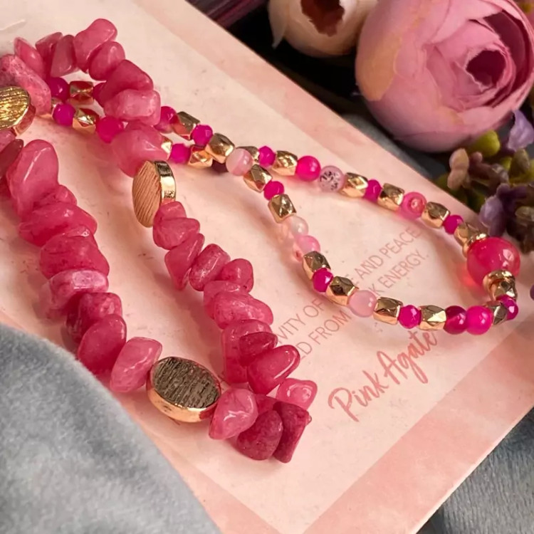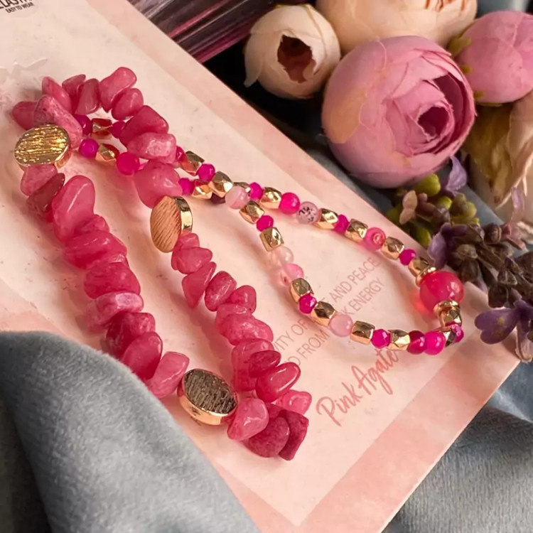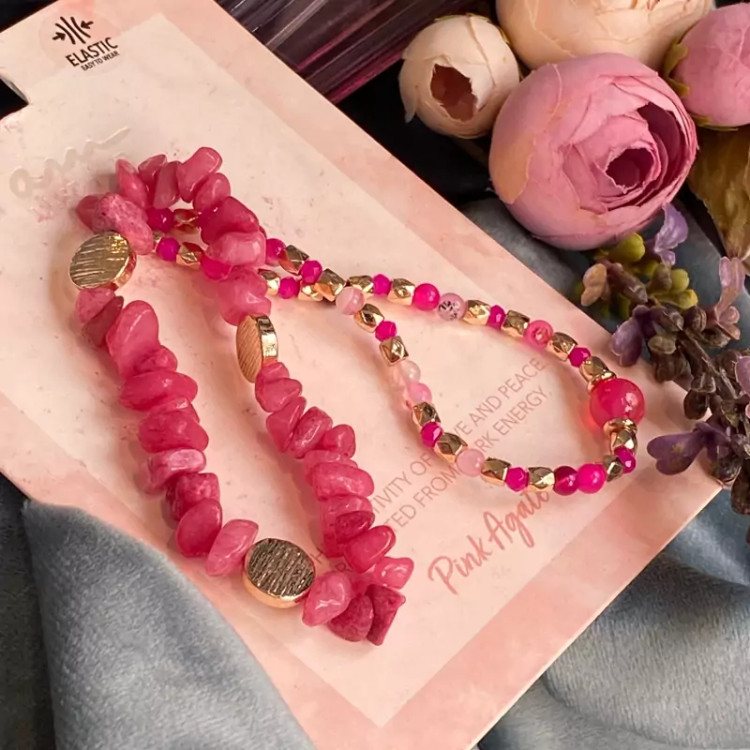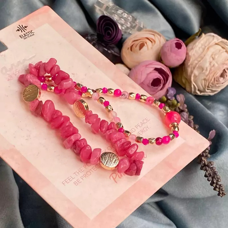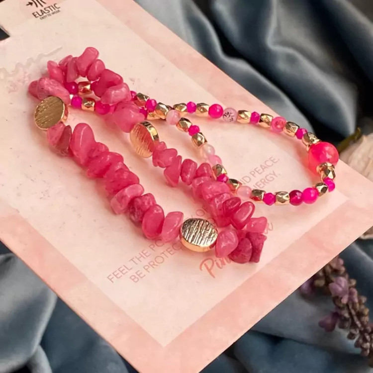 خرید دستبند دخترانه زنانه شیک با سنگ طبیعی صورتی زیورالات ظریف وارداتی با قیمت مناسب و ارسال فوری