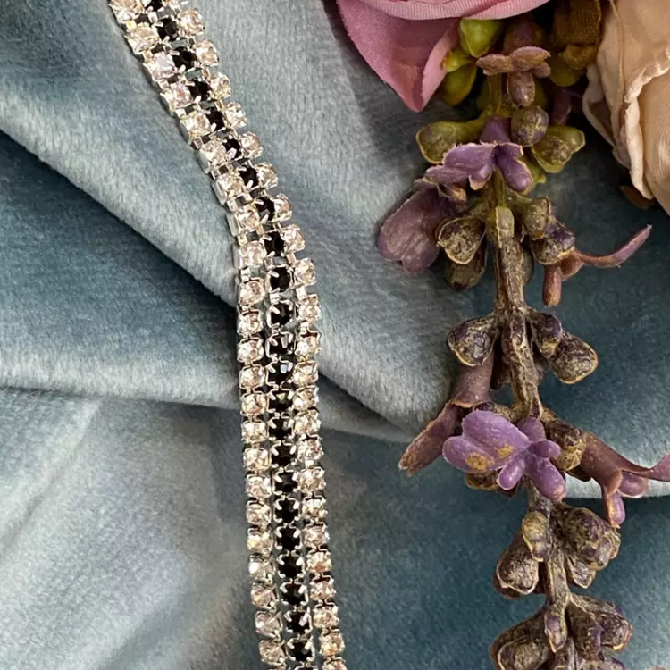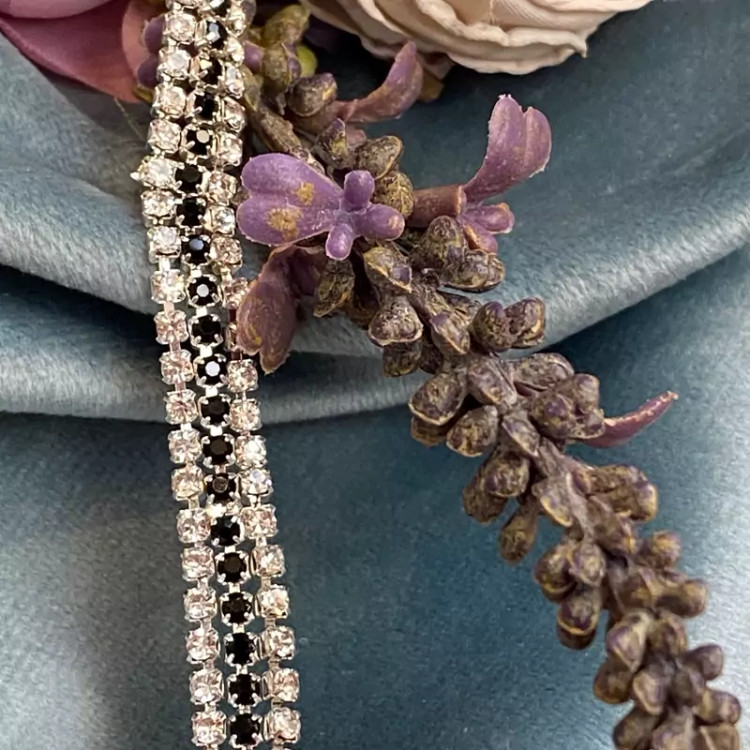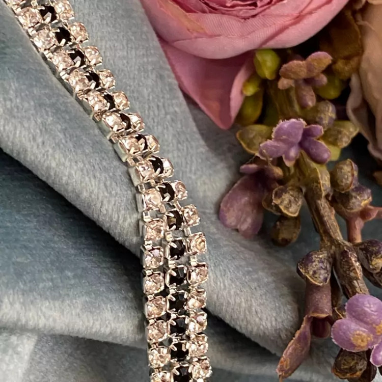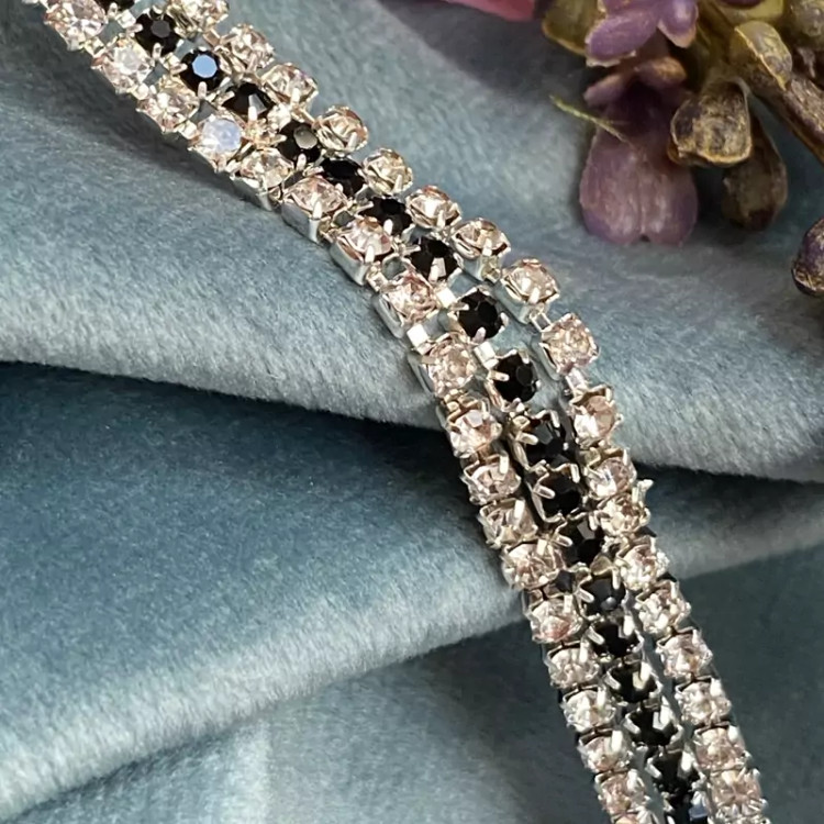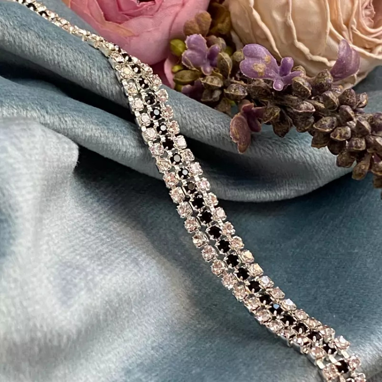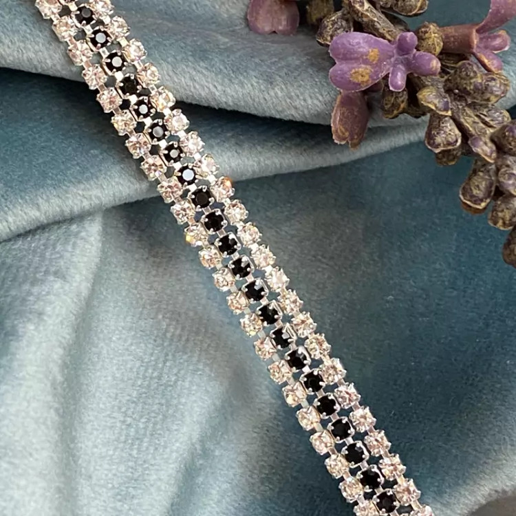 دستبند سه لاین تمام نگین با نگین های نقره ای و مشکی