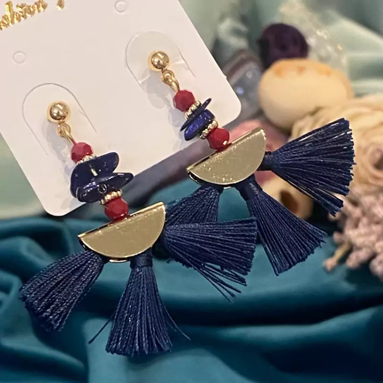 گوشواره میخی ابریشمی سرمه ای گوشواره مجلسی زنانه جدید مدل فوق العاده خاص