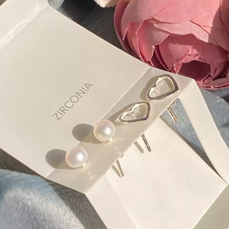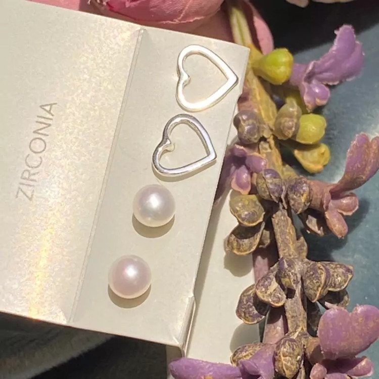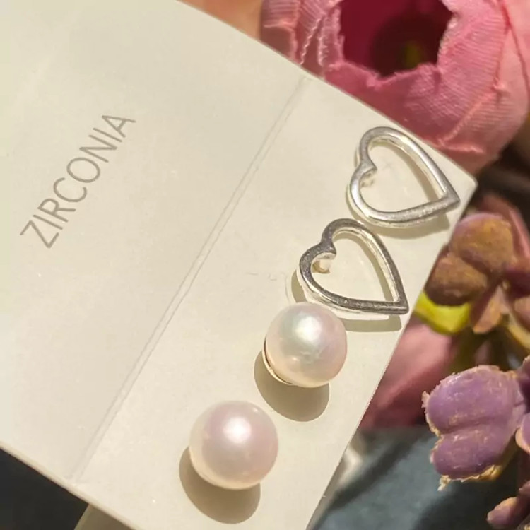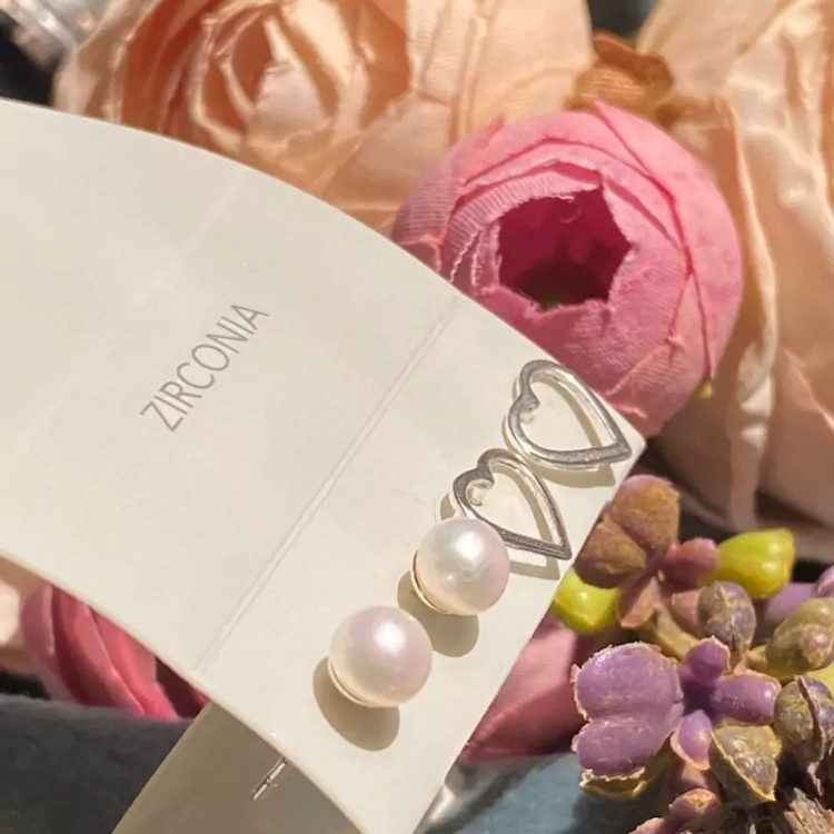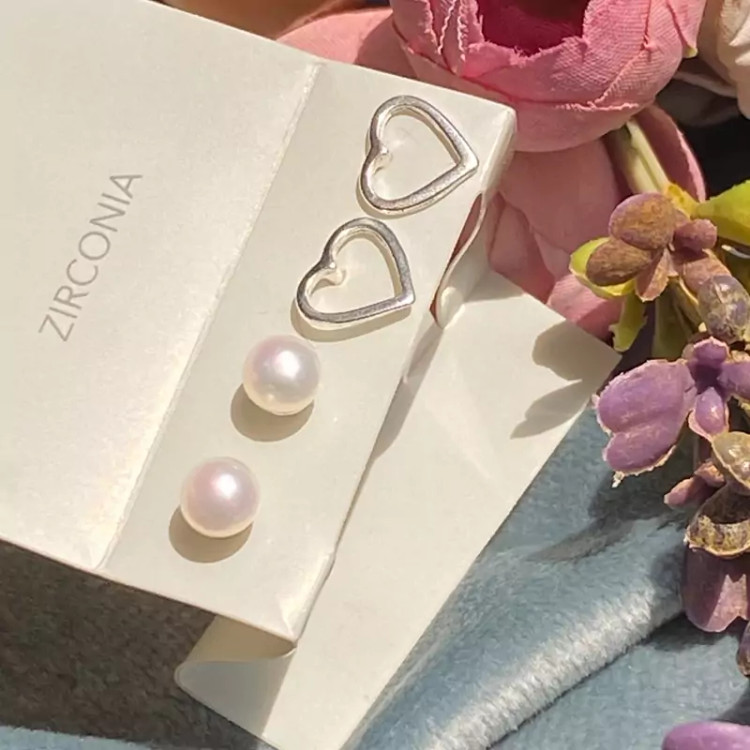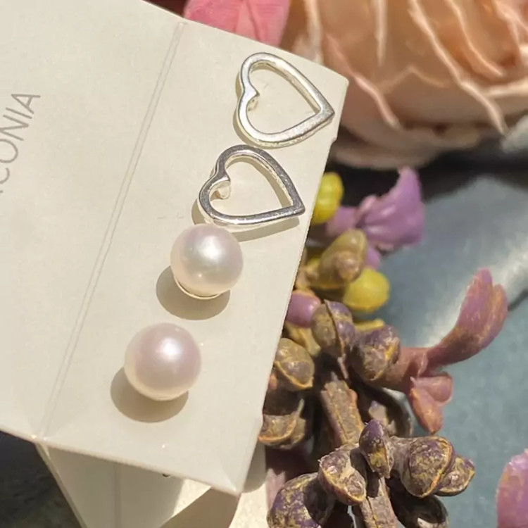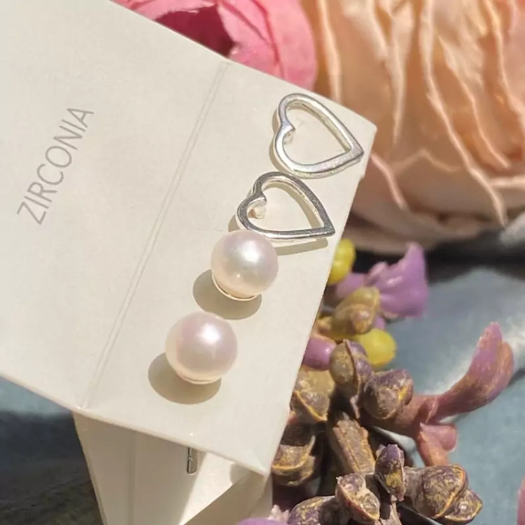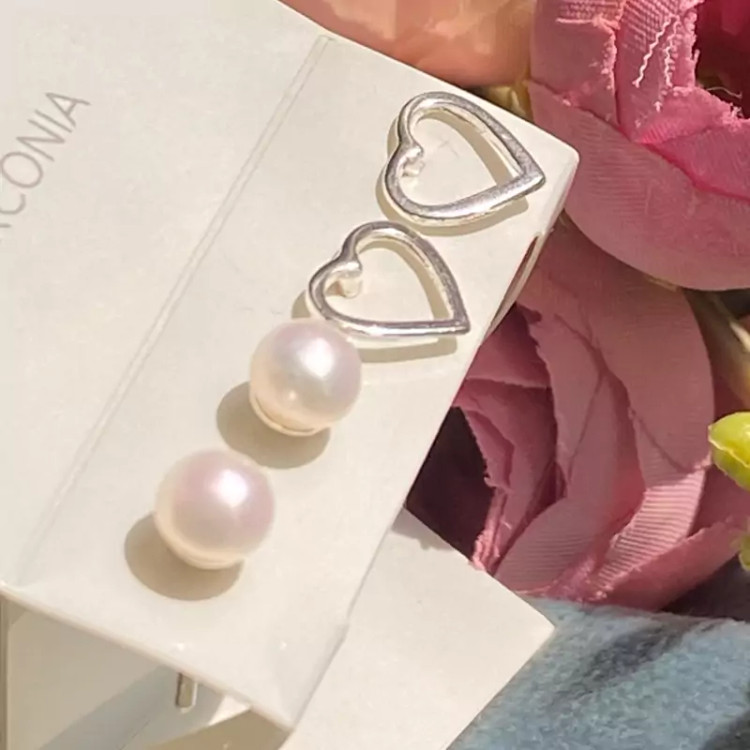 گوشواره نقره مدل قلب و مروارید مینیمال