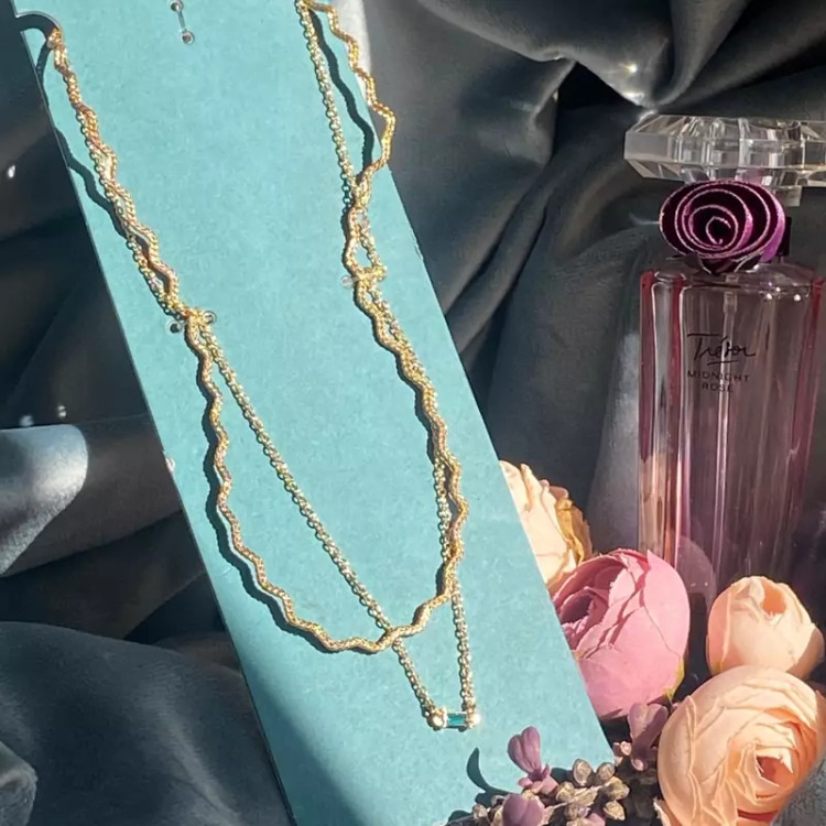 خرید پک گردنبند دولاینی طلایی مجلسی زنانه و دخترانه ارسال فوری به سراسر ایران