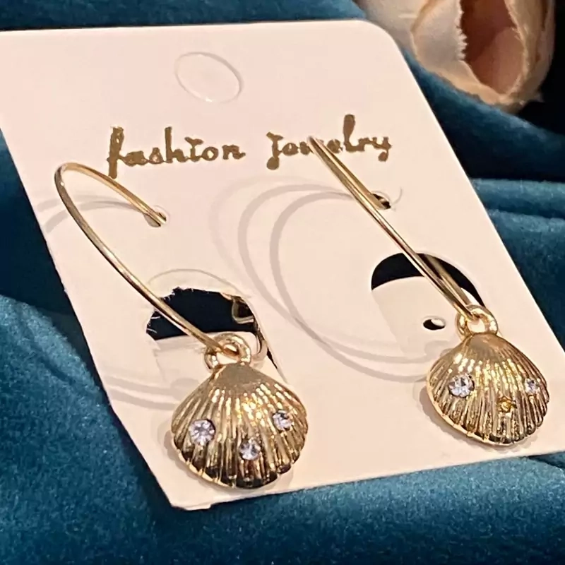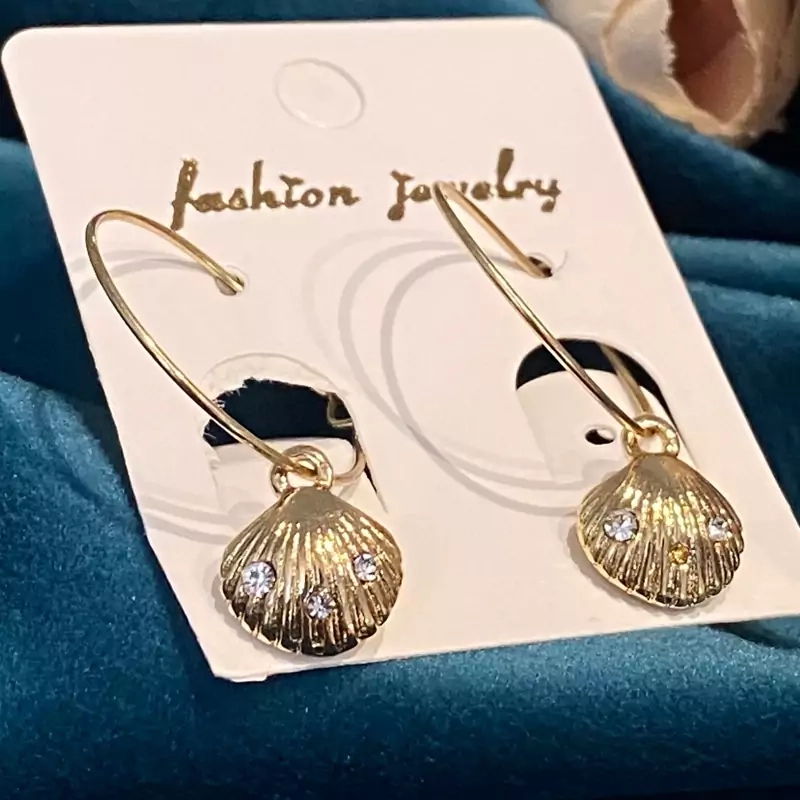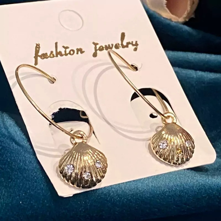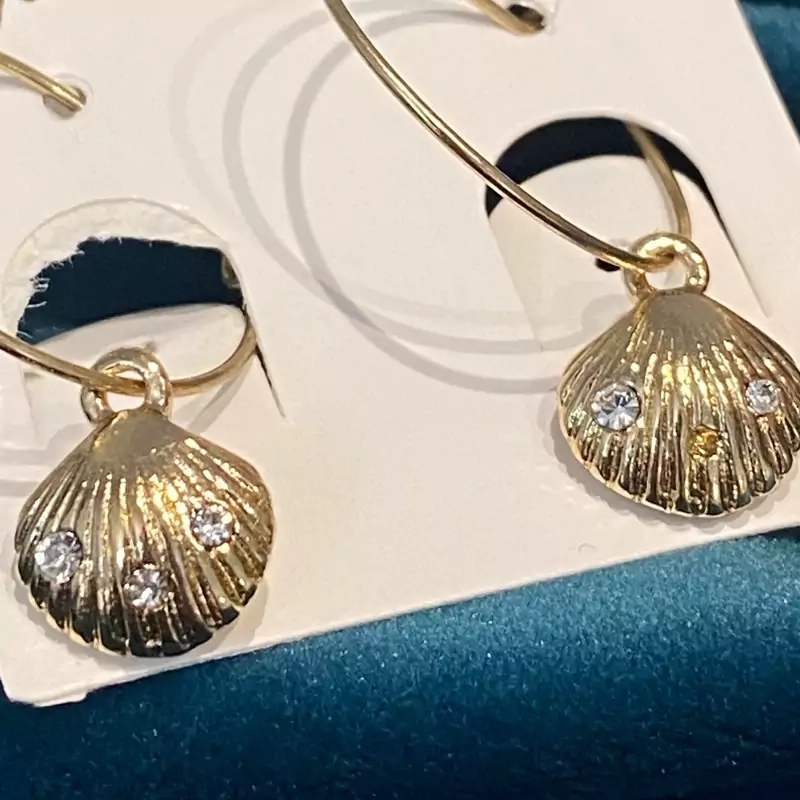 طلایی گوشواره حلقه ای طرح صدف تخفیف به دلیل افتادن یکی از نگین ها