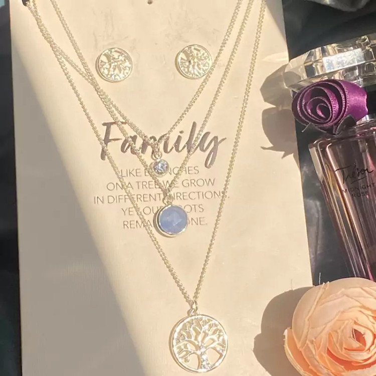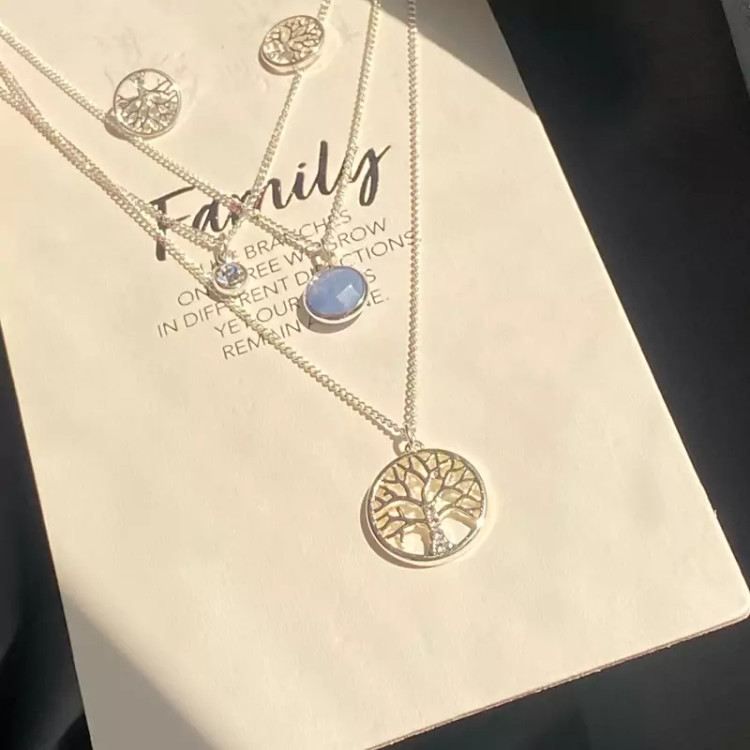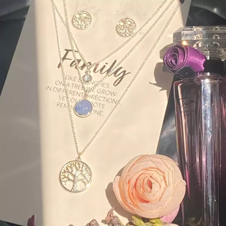 خرید نیم ست درخت زندگی گردنبند سه لاین و گوشواره نقره ای زنانه دخترانه مجلسی ارسال فوری به سراسر ایران