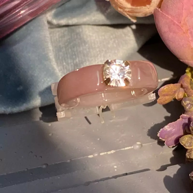 انگشتر پلاستیکی صورتی تک نگین دار خرید انگشتر دخترانه