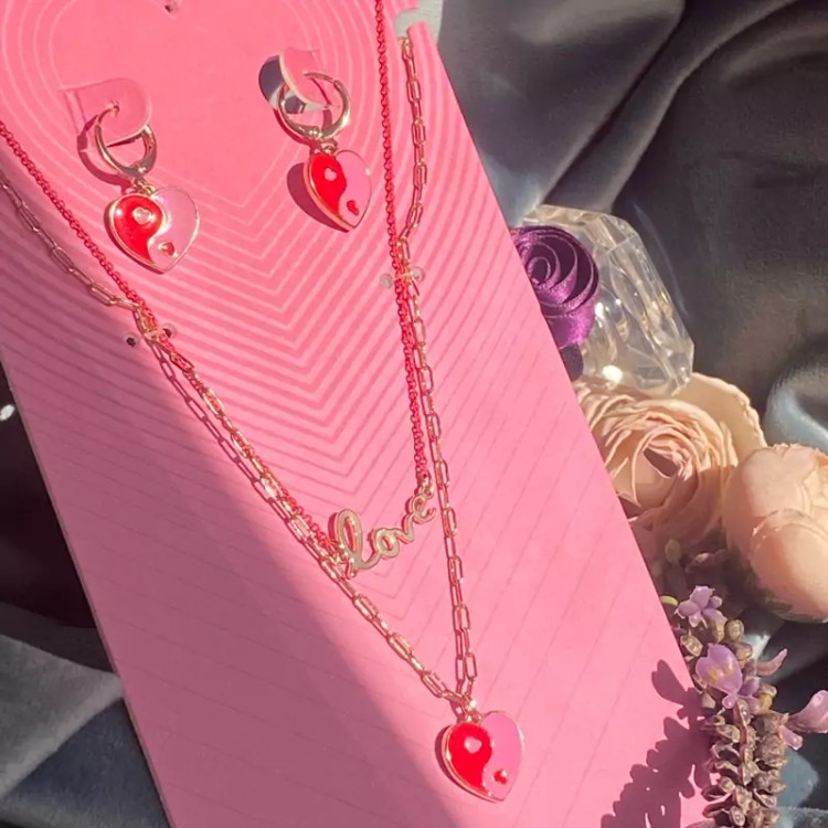 نیمست قلبی زنانه دخترانه مجلسی ترند ست گردنبند و گوشواره شیک