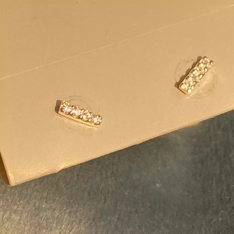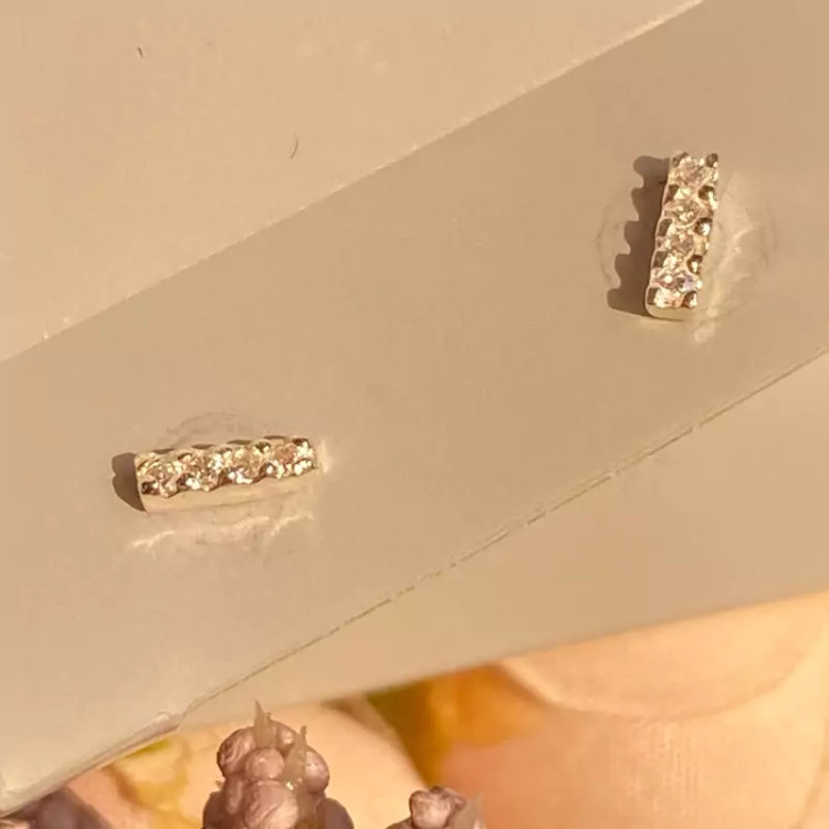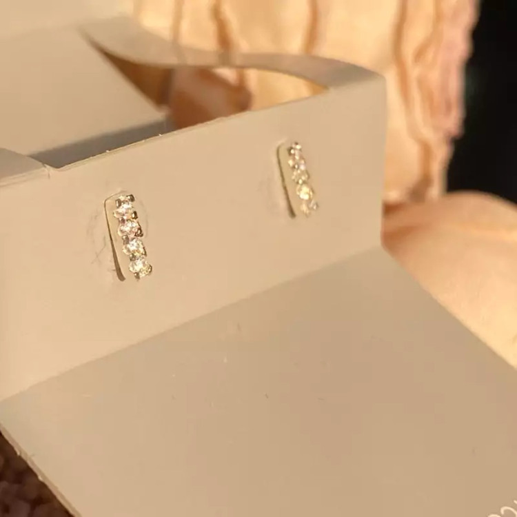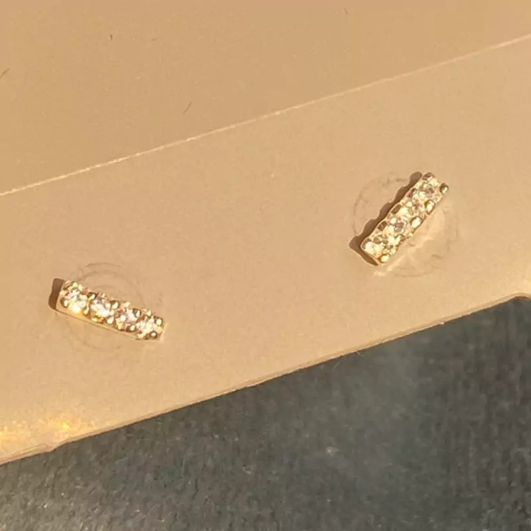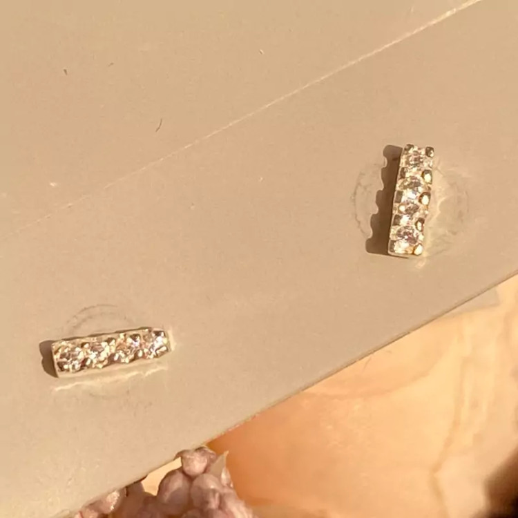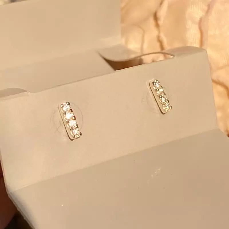 گوشواره نقره میخی نگین دار خطی براق عیار 925 دخترانه زنانه