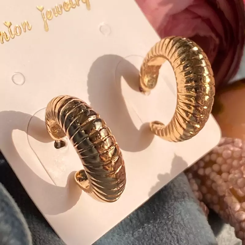 گوشواره طلایی نیم حلقه ای طرح دار گوشواره میخی دخترانه