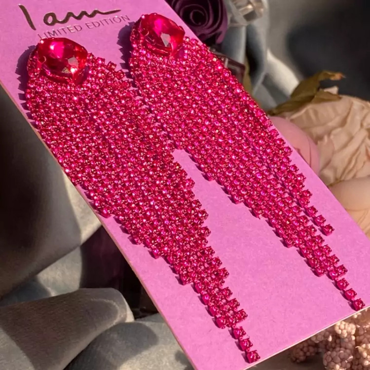 گوشواره نگین دار ریسه ای خرید و قیمت گوشواره مجلسی دخترانه و زنانه از ترب