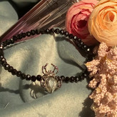 خرید دستبند کشی دخترانه و زنانه با مهره مشکی و پلاک عنکبوت شیک با قیمت مناسب و ارسال فوری