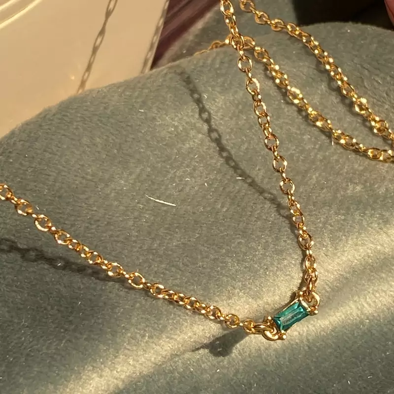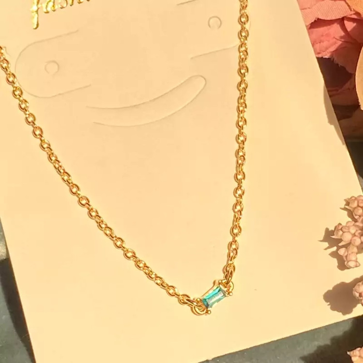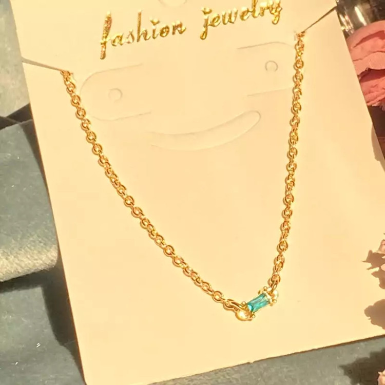 گردنبند با کریستال سبز ابی گردنبند ظریف دخترانه جدید