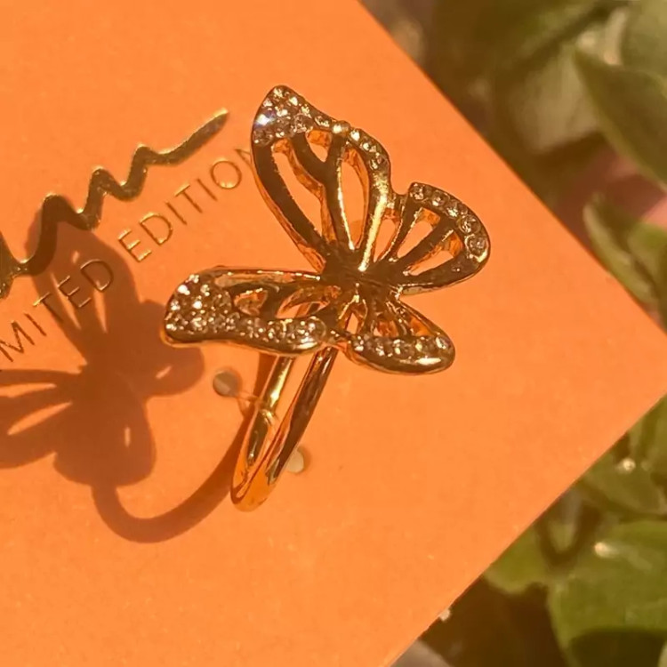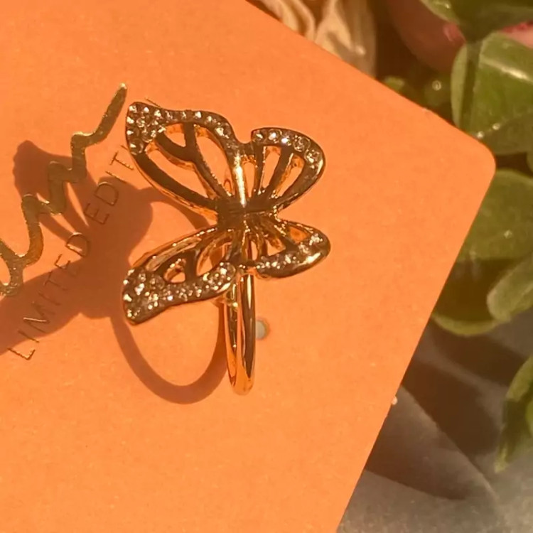 انگشتر جدید دخترانه پروانه نگین دار پایه طلایی مناسب استفاده مداوم بدون برخورد الکل و استحمام ضد حساسیت ارسال فوری به سراسر ایران زیورآلات و بدلیجات شیک و جدید مجلسی با قیمت مناسب و ارزن و کیفیت بالا زیورآلات جدید طرح طلا زنانه و دخترانه خرید و فروش انواع گوشواره و گردنبند و پابند و انگشتر ،دستبند ،بدل ،استیل و نقره معتبرترین فروشگاه اینترنتی فروش اکسسوری و زیورآلات زنانه و دخترانه شیک با بیش از 4 سال سابقه ی فروش انلاین موفق با بیش از 5000 محصول متنوع در دو فروشگاه فعال برف گالری و زیورآلات سواروسکی این فروشگاه با اختلاف متنوع ترین فروشگاه زیورآلات زنانه و دخترانه در باسلام و ترب میباشد.