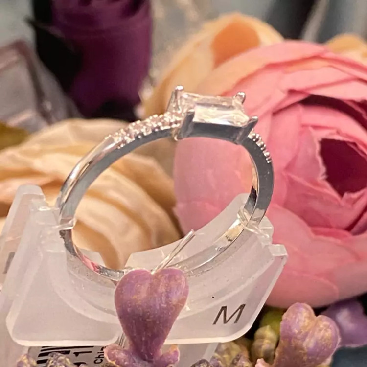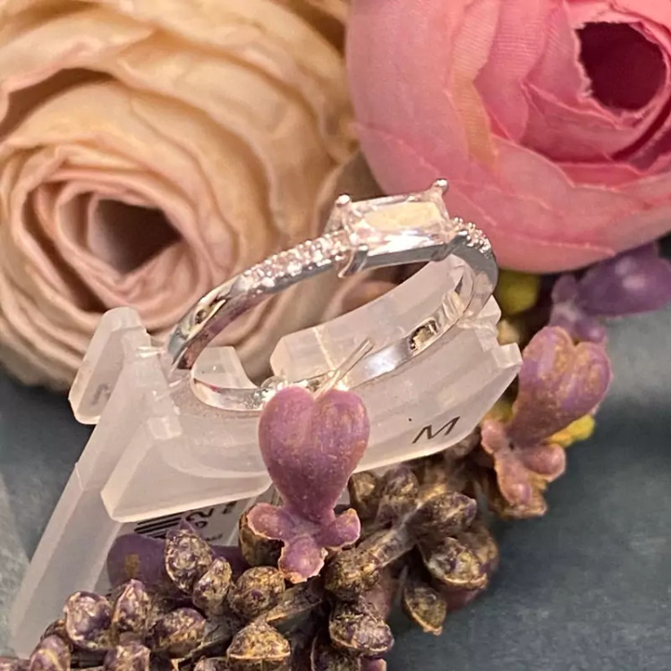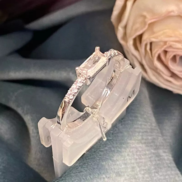 انگشتر ظریف پایه نقره ای تک کریستالی