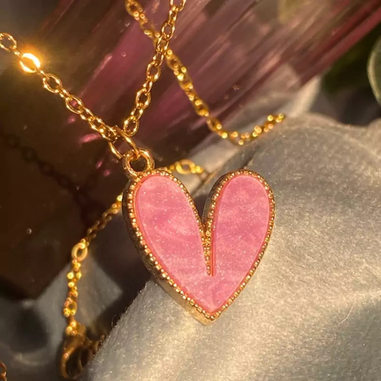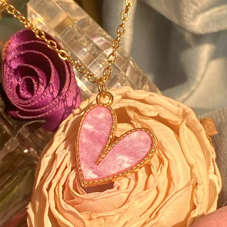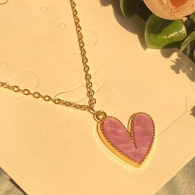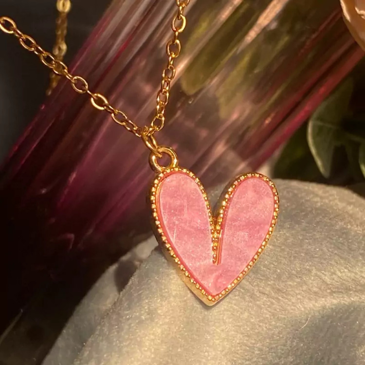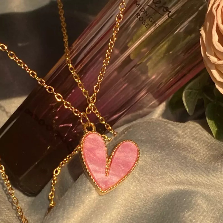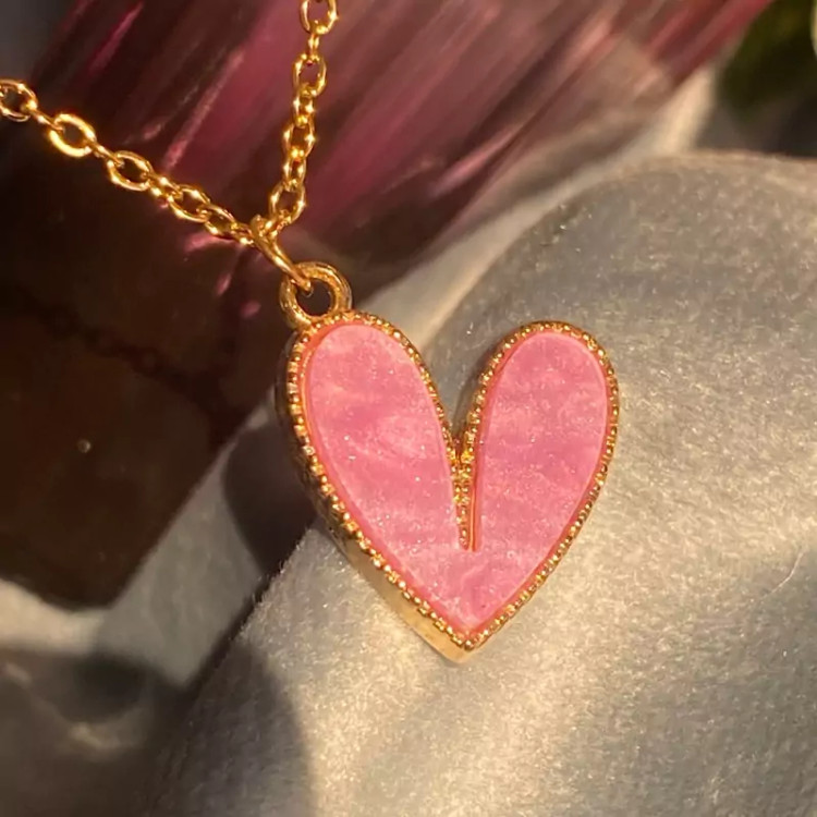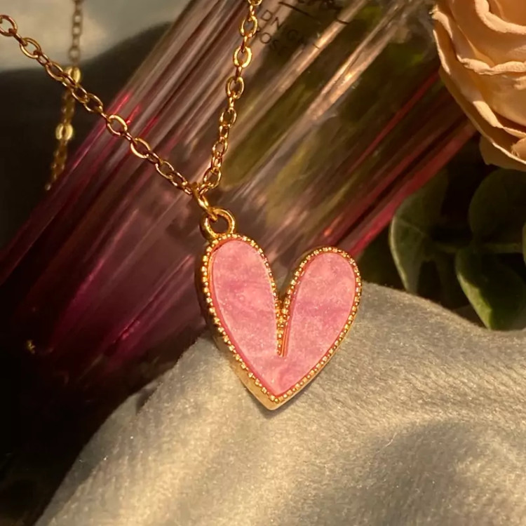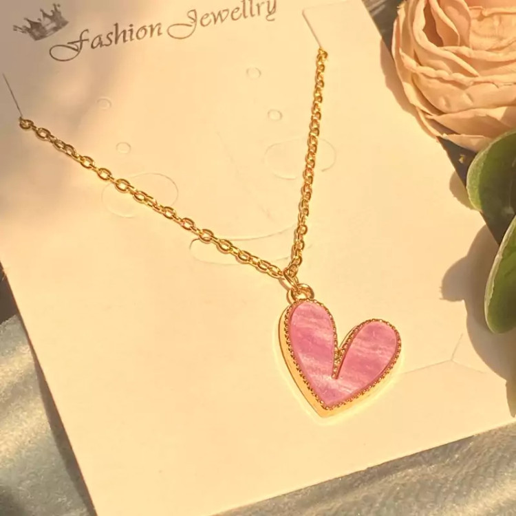 گردنبند قلب صورتی جدید دخترانه حراج واقعی