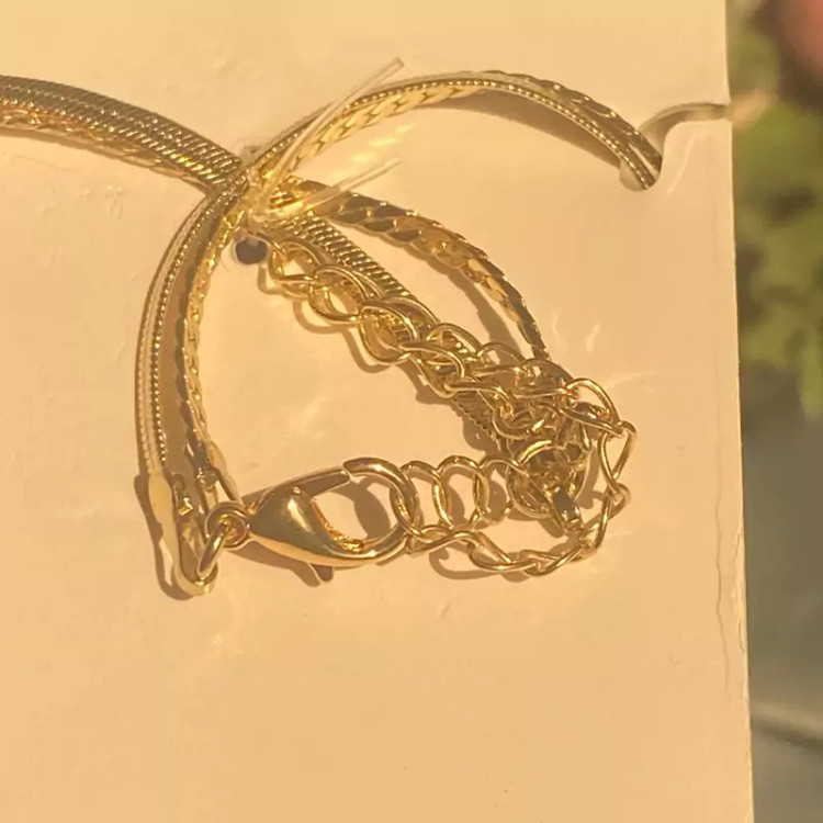 گردنبند سه لاین مرواریدی نگین دار دخترانه زنانه طلایی شیک جدید 2025