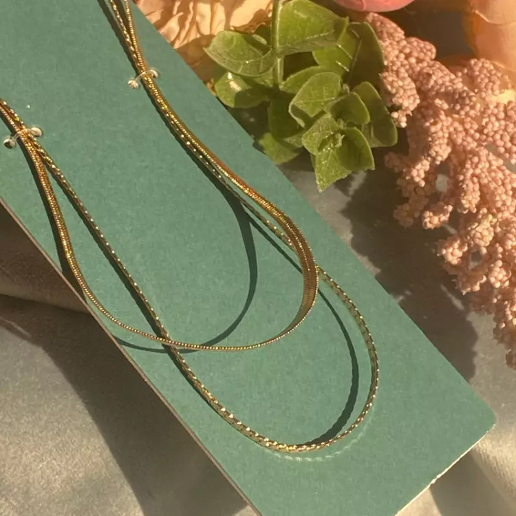 گردنبند ماری زنجیر ماری طلایی دخترانه دو لاین مناسب استفاده مداوم بدون برخورد الکل و استحمام ضد حساسیت ارسال فوری به سراسر ایران گردنبند جدید دخترانه و زنانه شیک با تخفیف ویژه از ترب و باسلام به مدت محدود زیورآلات و بدلیجات شیک و جدید مجلسی با قیمت مناسب و ارزن و کیفیت بالا زیورآلات جدید طرح طلا زنانه و دخترانه خرید و فروش انواع گوشواره و گردنبند و پابند و انگشتر ،دستبند ،بدل ،استیل و نقره معتبرترین فروشگاه اینترنتی فروش اکسسوری و زیورآلات زنانه و دخترانه شیک با بیش از 4 سال سابقه ی فروش انلاین موفق با بیش از 5000 محصول متنوع در دو فروشگاه فعال برف گالری و زیورآلات سواروسکی این فروشگاه با اختلاف متنوع ترین فروشگاه زیورآلات زنانه و دخترانه در باسلام و ترب میباشد. فوق العاده زیبا و خاص با کیفیت درجه یک وارداتی به سفارش المان اکسسوری شیک