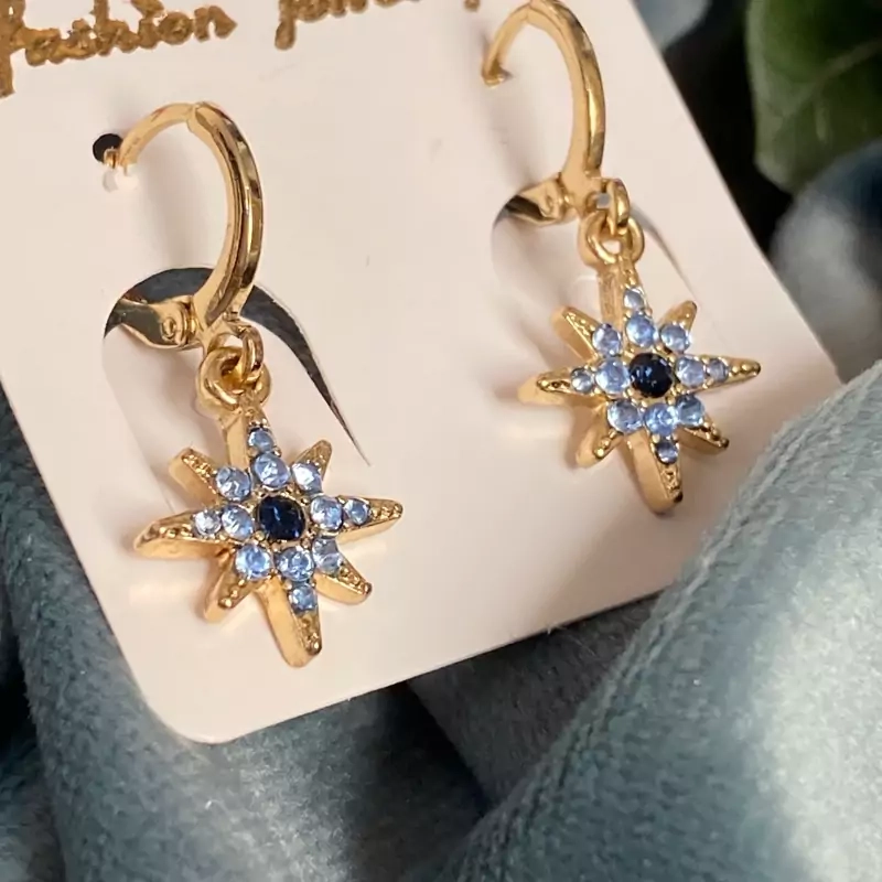 گوشواره ستاره با نگین های آبی سواروسکی بینظیر برای هدیه تولد