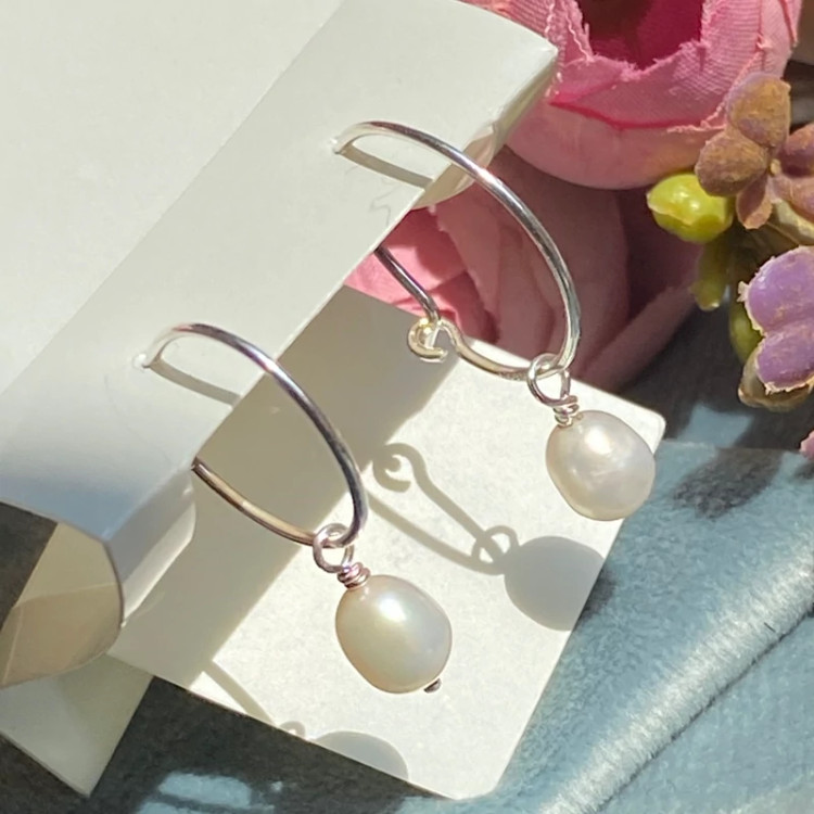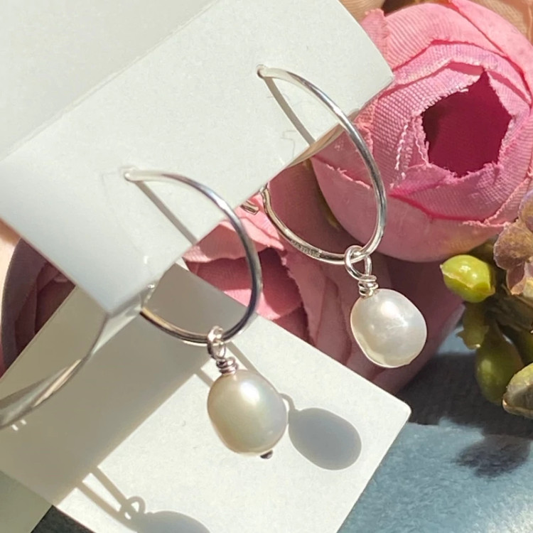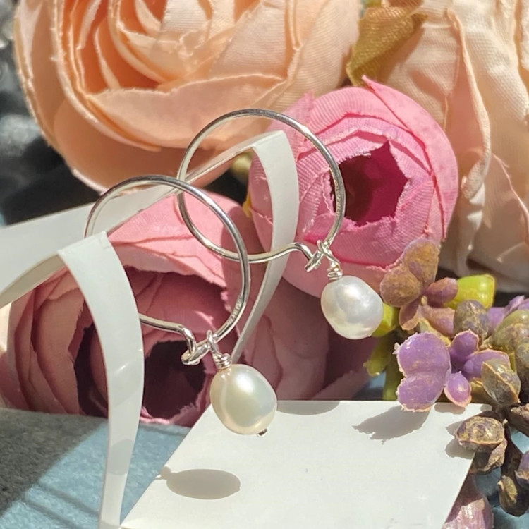 گوشواره نقره حلقه ای صدف دار مینیمال عیار 925 زنانه دخترانه