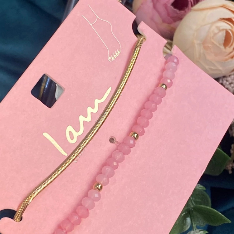 طراحی این پابندها بسیار خاص و ترند روزه. ترکیب رنگ طلایی با مهرههای صورتی، جلوهای چشمگیر و دخترونه بهش داده و برای استفاده روزمره یا مهمونی عالیه. سبک و ظریفه، بهطوری که توی استفاده طولانی مدت اصلاً اذیت نمیشی.