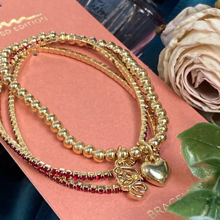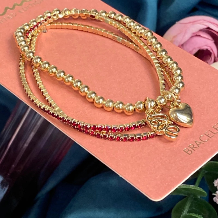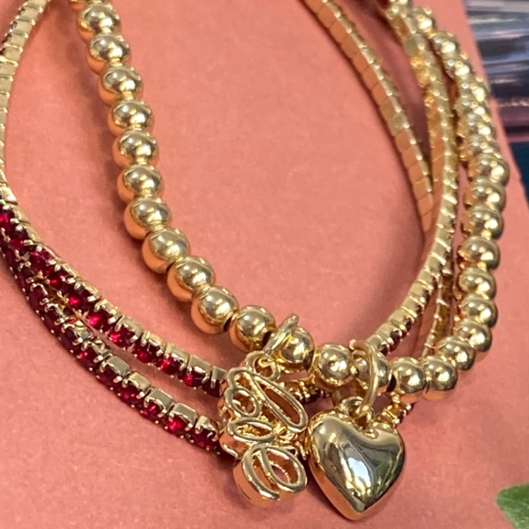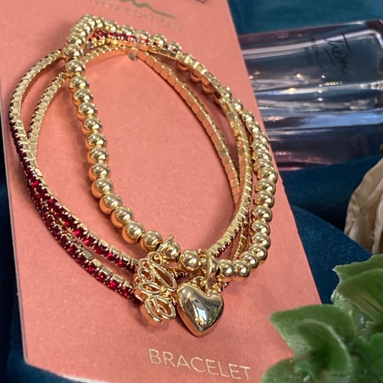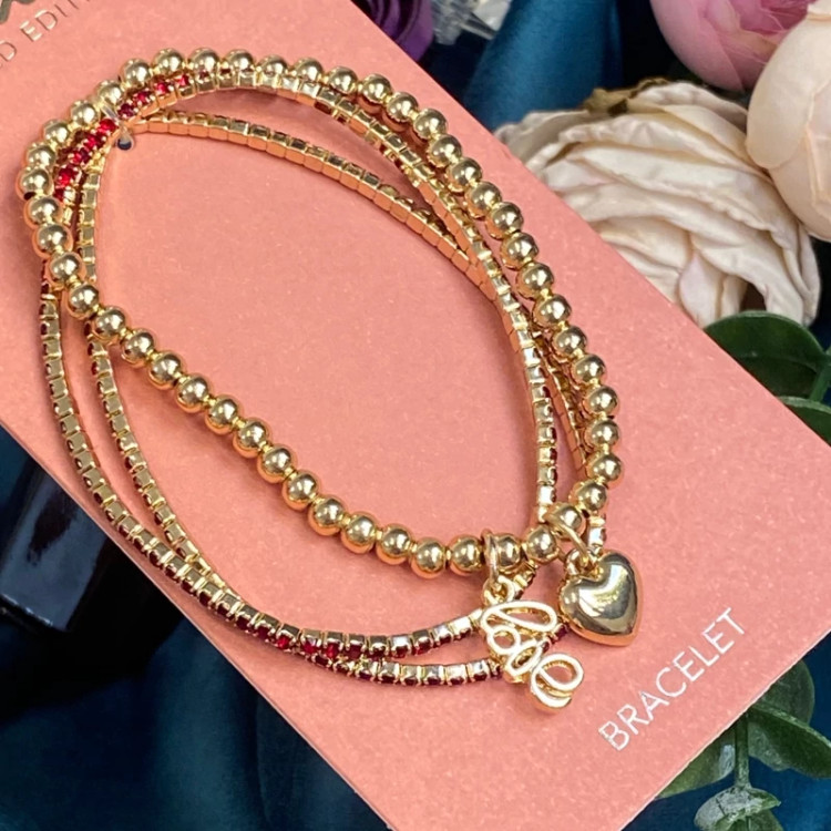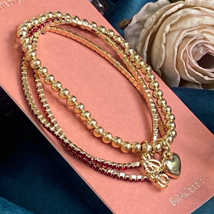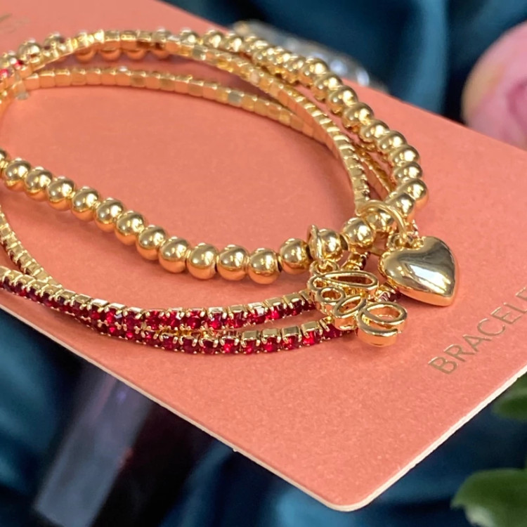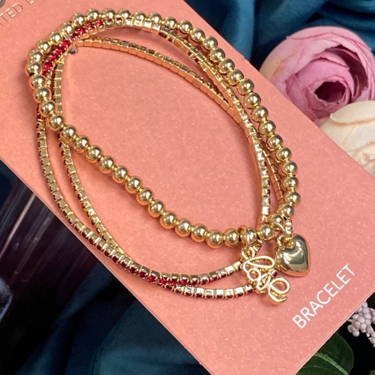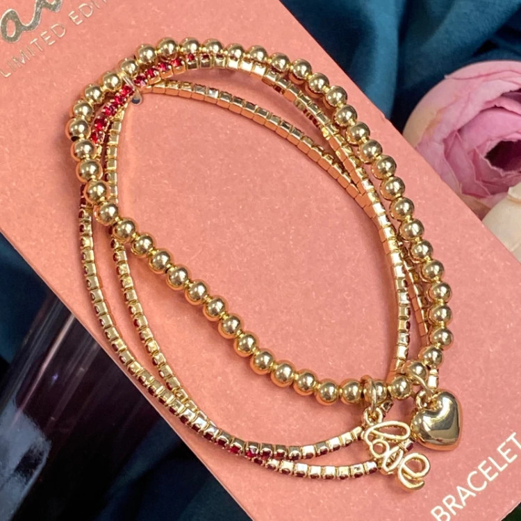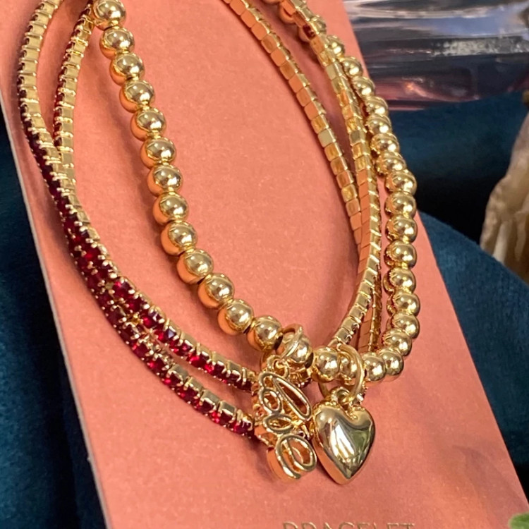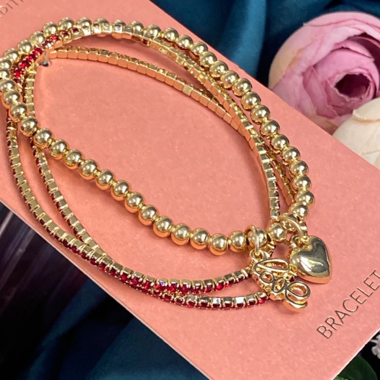 پک دستبند کشی دخترانه سه عددی با پلاک قلب جدید و شیک مناسب کادو تولد
