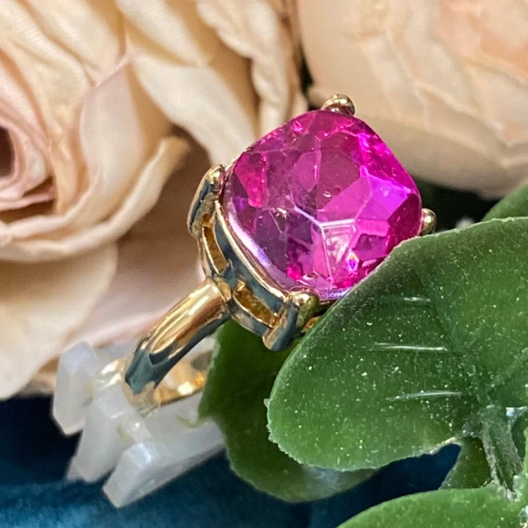 انگشتر دخترانه کریستال سرخابی انگشتر شیک زنانه وارداتی سبک و ضد حساسیت
