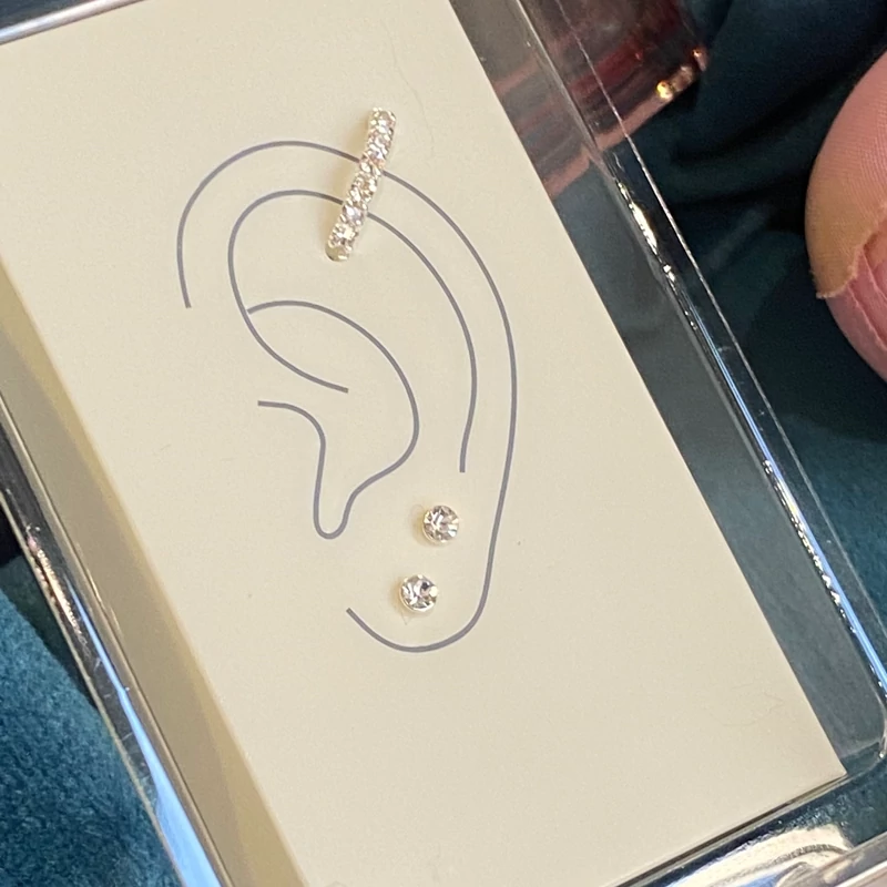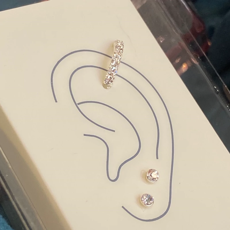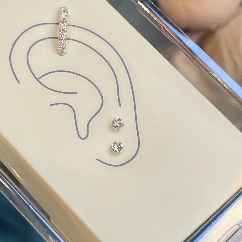 پک خاص و اقتصادی شامل دو عدد گوشواره میخی نقرهای با طراحی مینیمال 👂🏻 به همراه یک ایرکاف نقره نگیندار بدون نیاز به سوراخ گوش 💎