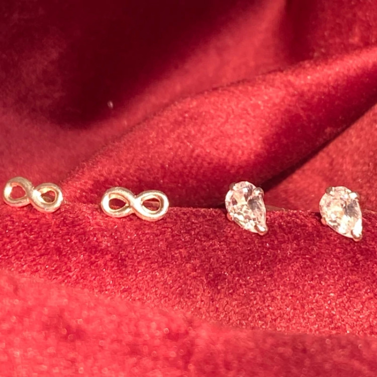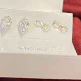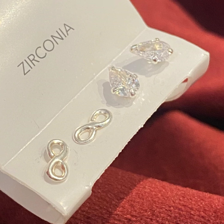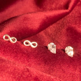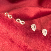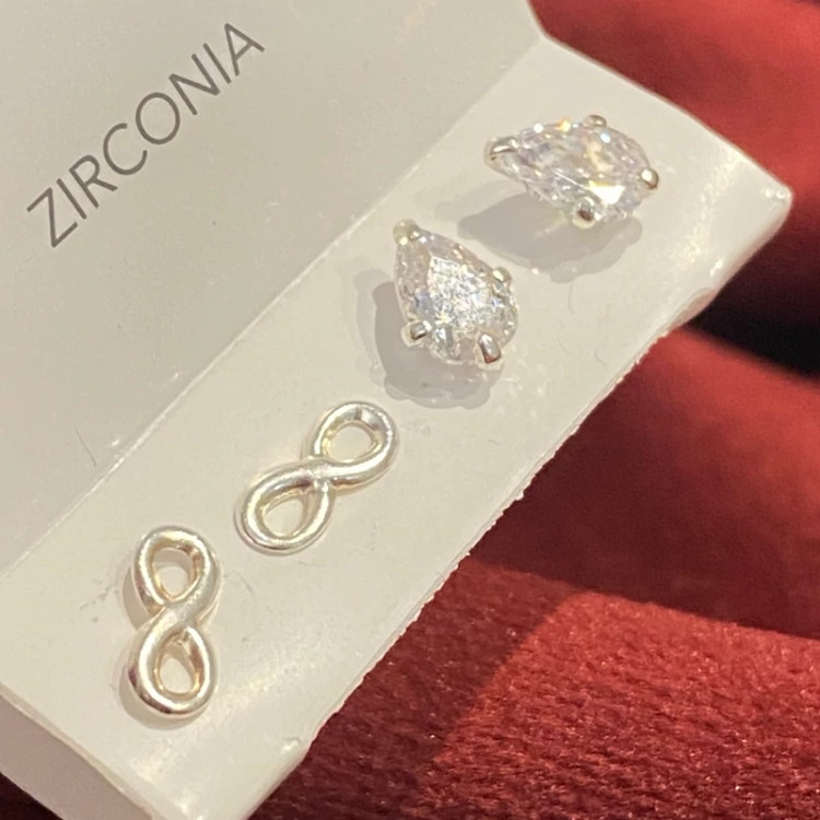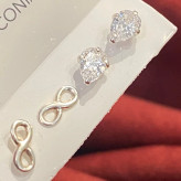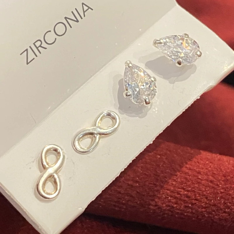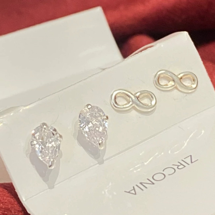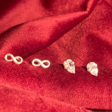 گوشواره نقره مینیمال در پک دوتایی طرح اشک و بینهایت تمام نقره نقره ی اصل با عیار 925 حک شده روی خود محصول اکسسوری نقره شیک با قیمت مناسب با کریستال زیرکنیا فوق العاده درخشان و زیبا