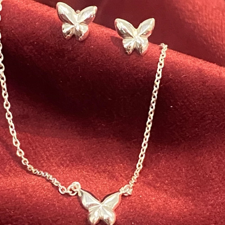 نیم ست نقره طرح پروانه نیمست جدید زنانه نقره عیار 925