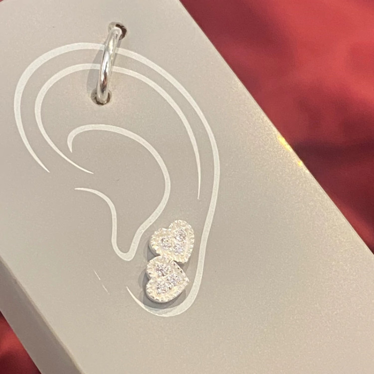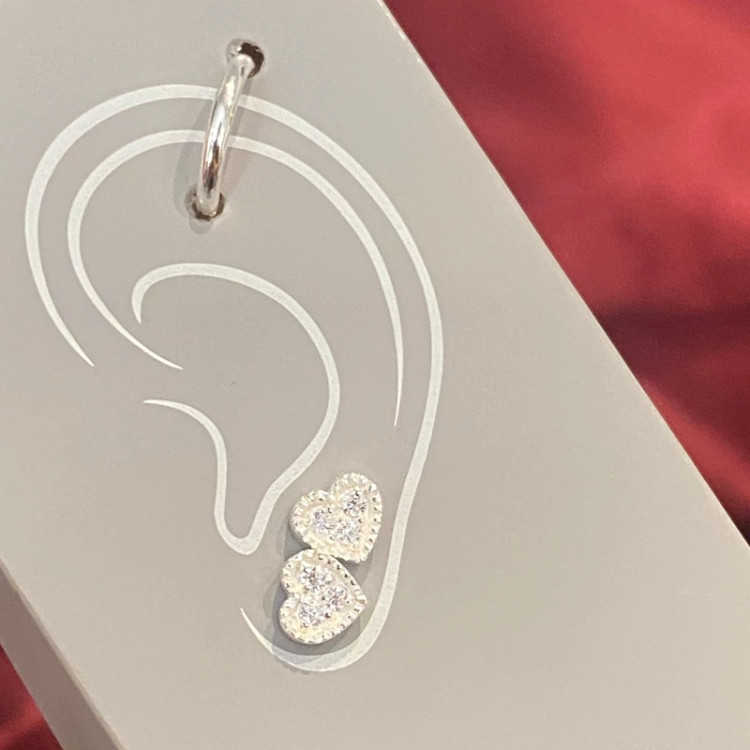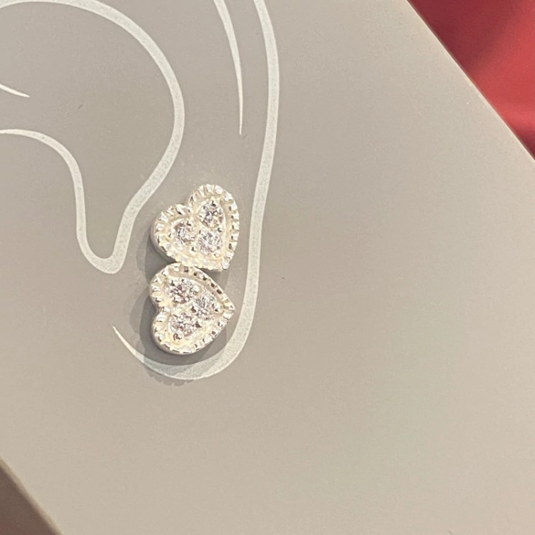 پک گوشواره و پیرسینگ گوش نقره عیار 925 مینیمال نقره اصل وارداتی گوشواره نقره قلب براق و درخشان
