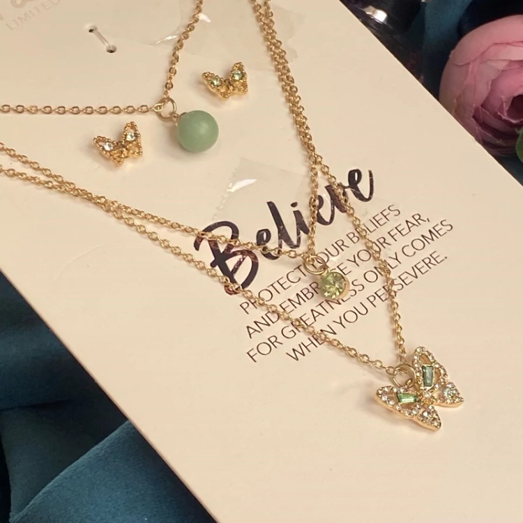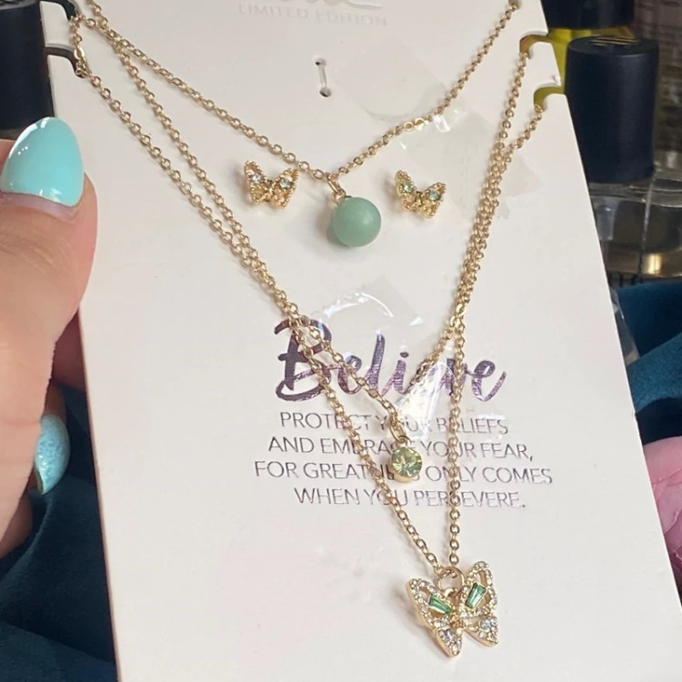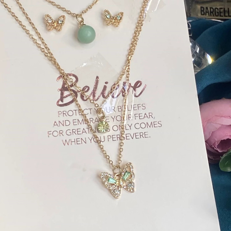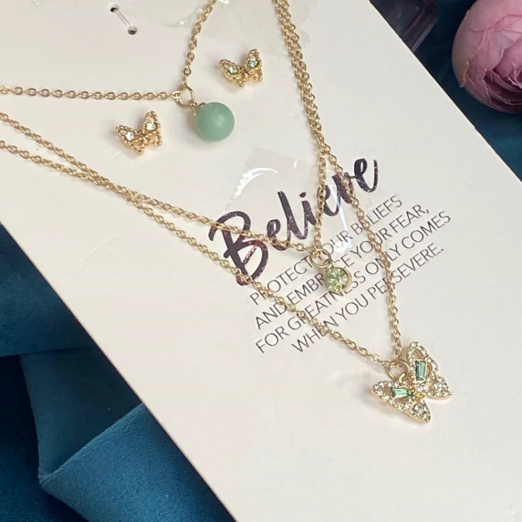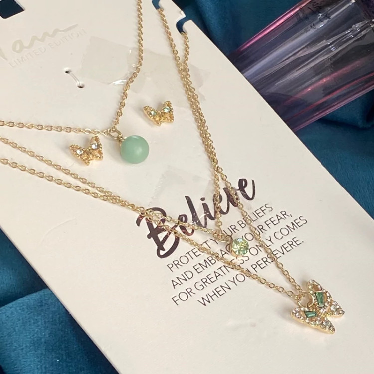 خرید نیمست پروانه زنانه دخترانه گردنبند سه لاین وارداتی جدید با ارسال فوری