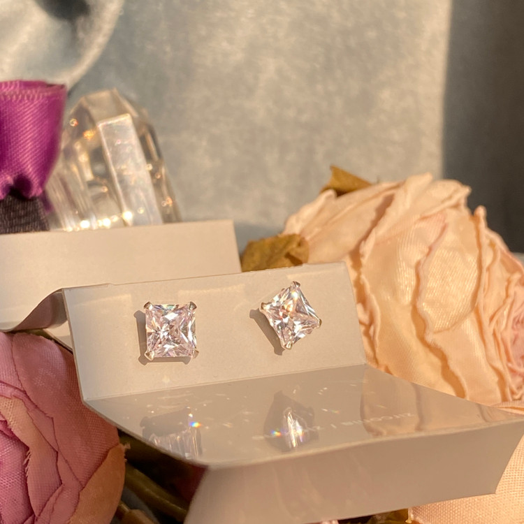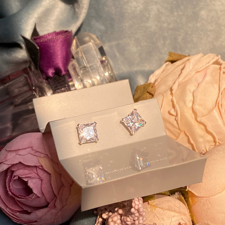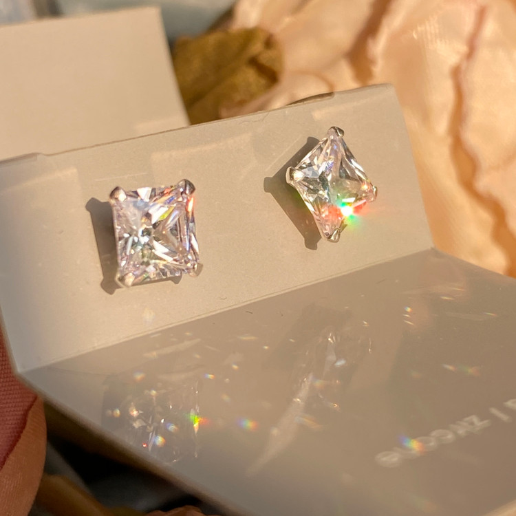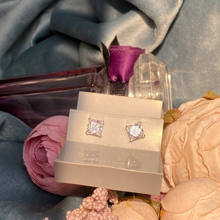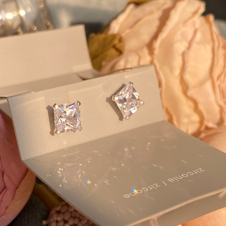 خرید گوشواره نقره میخی نگیندار دخترانه زنانه | شیک، درخشان، نقره ۹۲۵، ضد حساسیت