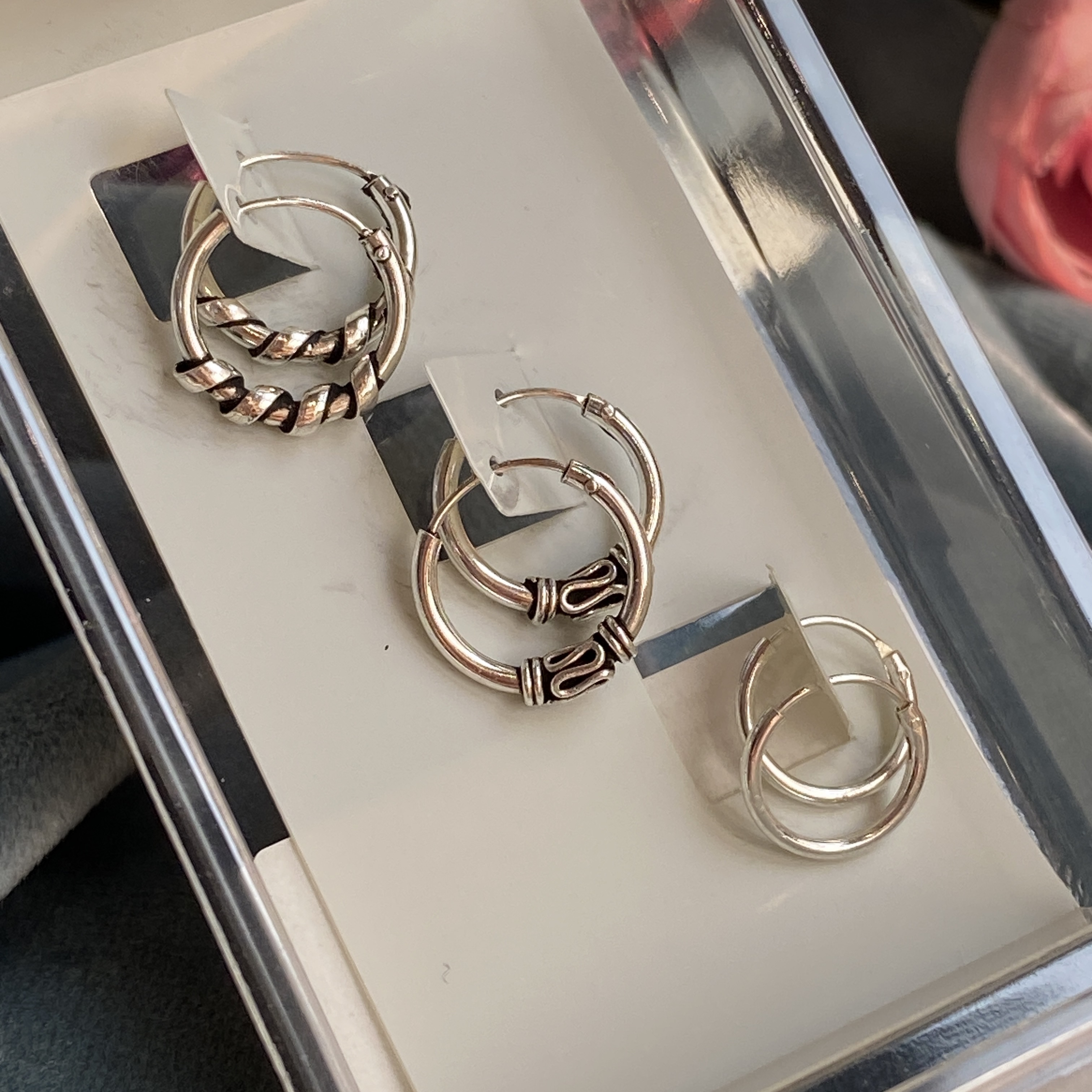 خرید پک گوشواره حلقهای طرحدار نقرهای | خاص، ترند، جذاب برای هر استایل! ✨