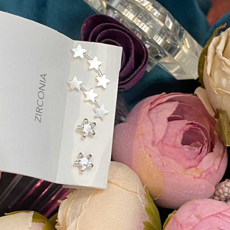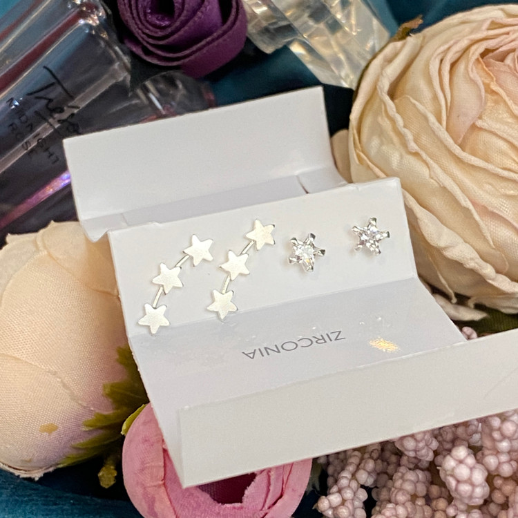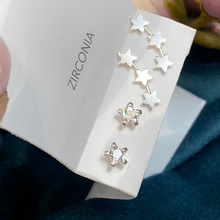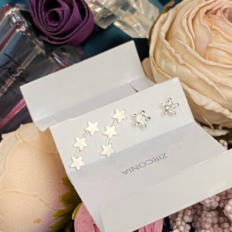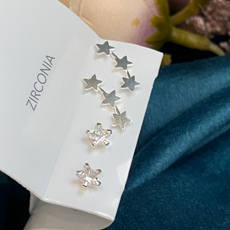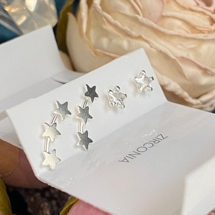 پک دوتایی گوشواره نقره زنانه مدل ستاره دنبالهدار و ستاره کریستالی | طراحی خاص و درخشان برای استایلهای دخترونه ✨🌟