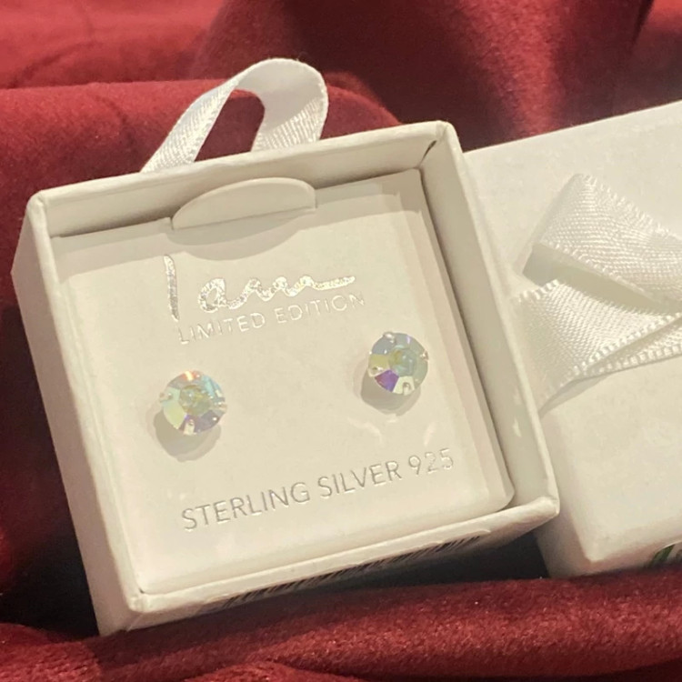 گوشواره نقره زنانه میخی کریستال هفت رنگ بینظیر برای کادو تولد