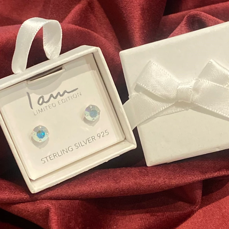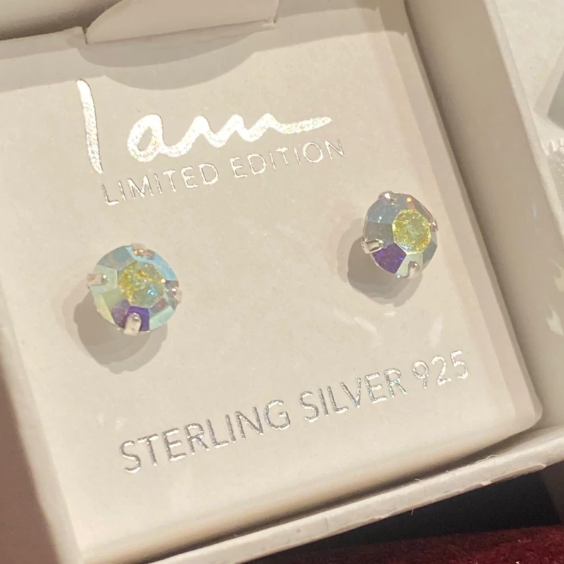 گوشواره نقره زنانه میخی کریستال هفت رنگ بینظیر برای کادو تولد