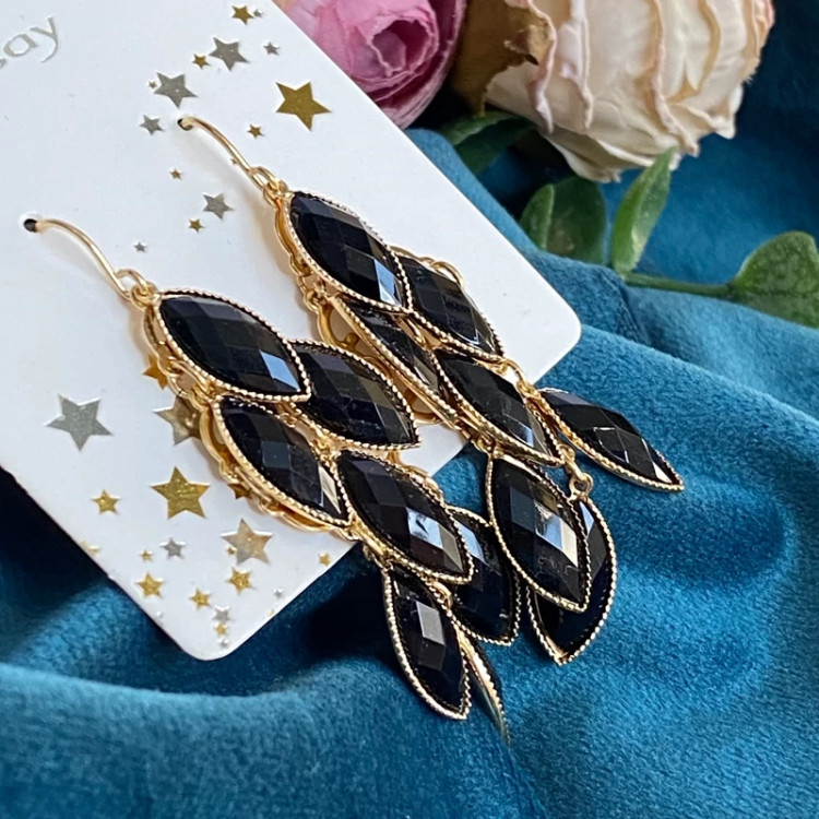 خرید گوشواره آویز کریستال مشکی جدید گوشواره دخترانه و زنانه شیک و خاص