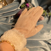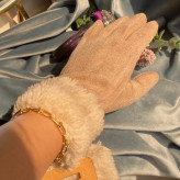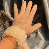 خرید دستکش تو کرک زمستانی کرمی گرم، نرم و شیک دخترانه