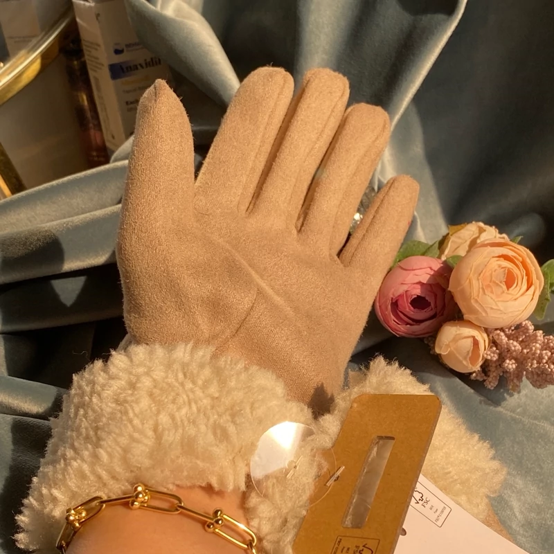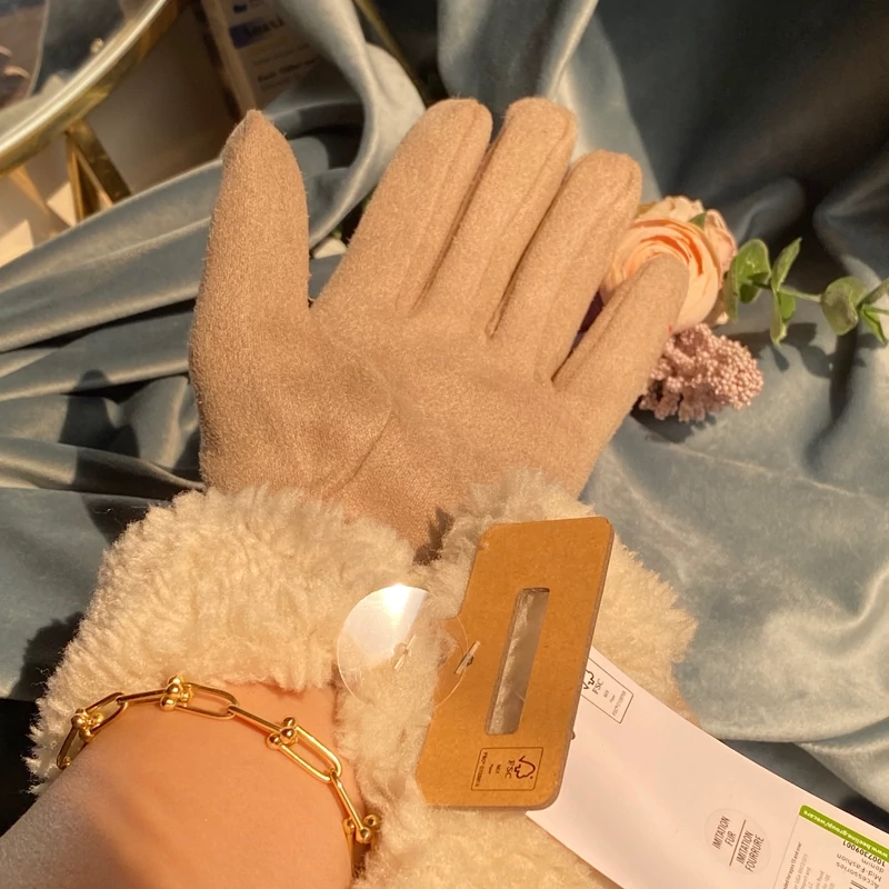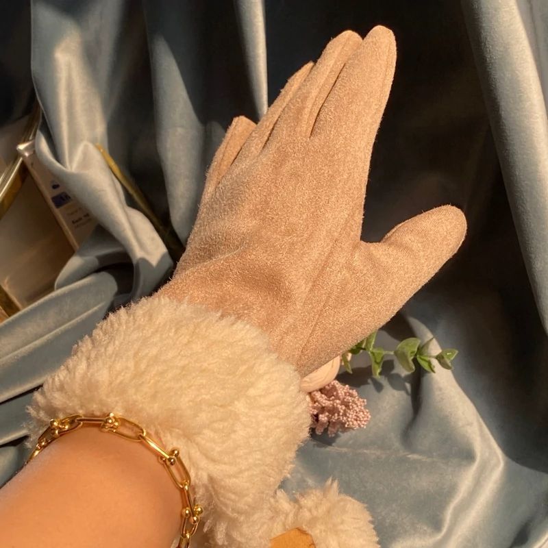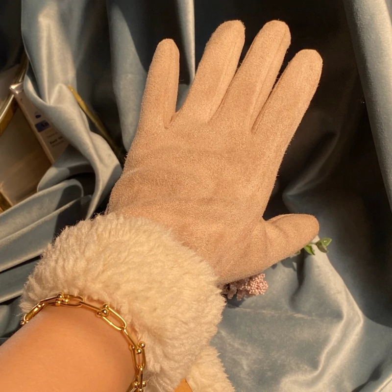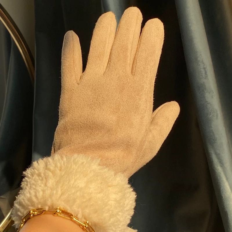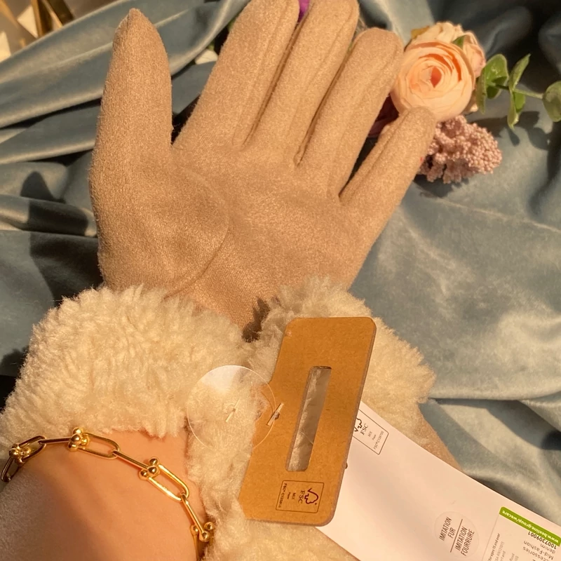 برای خرید دستکش تو کرک زمستانی کرمی شیک، این مدل با طراحی گرم و لطیف، مناسب روزهای سرد و استایل دخترانه و زنانه است.