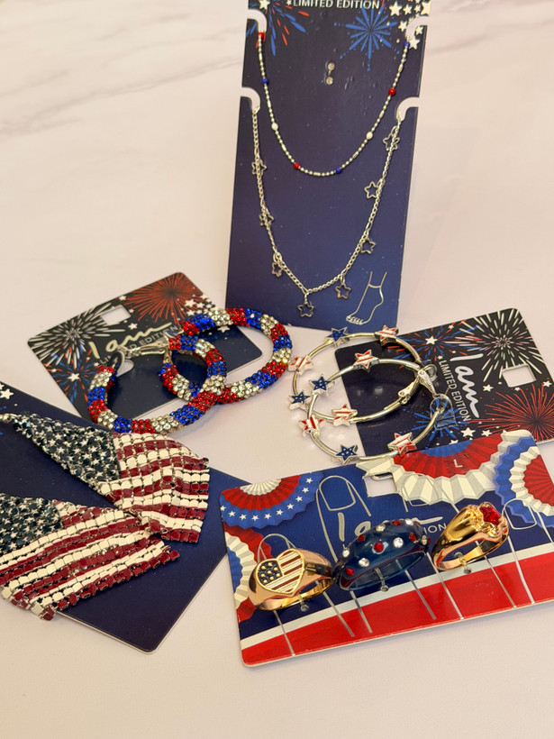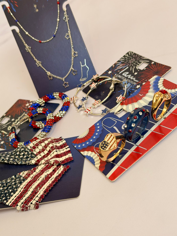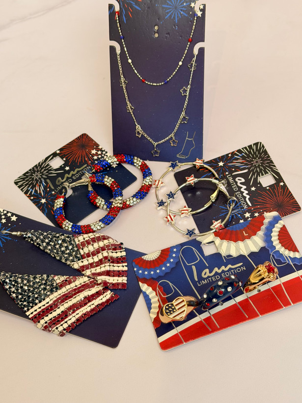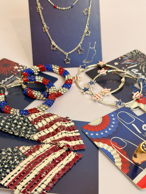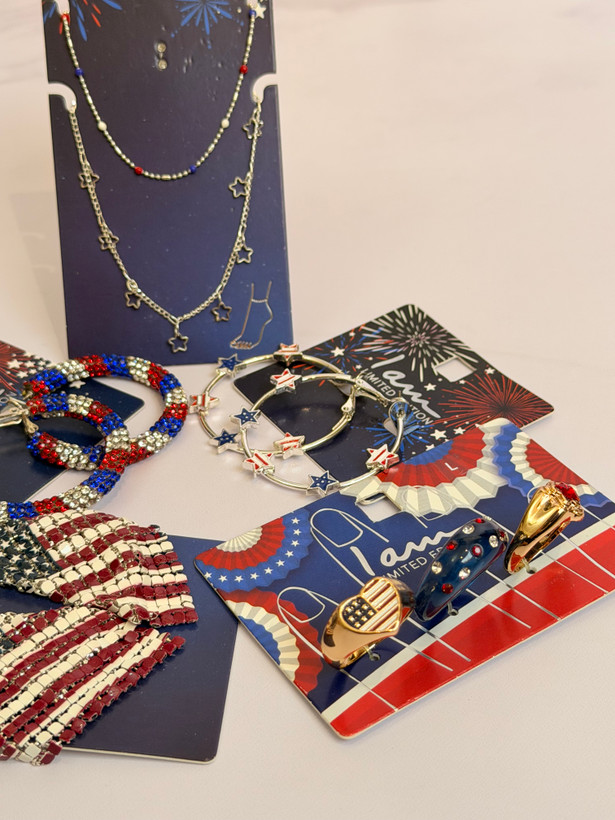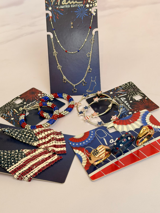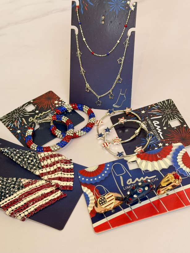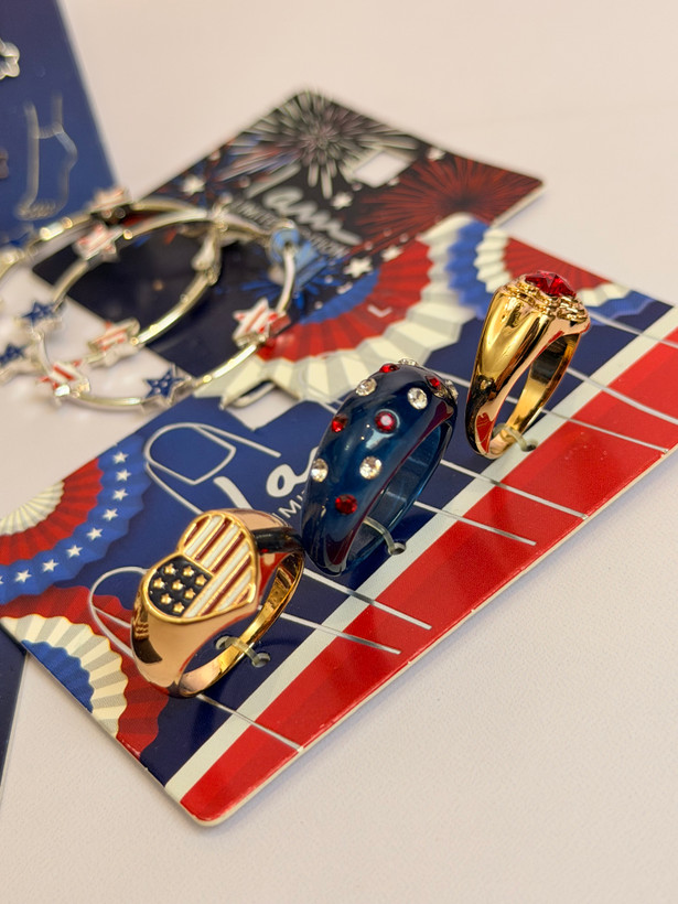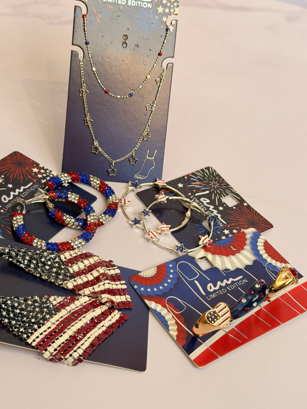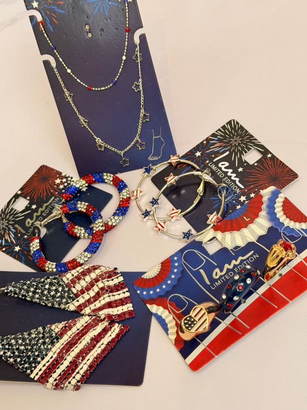 ست زیورآلات دخترانه مدل پرچم امریکا | پک کامل پابند + 3 گوشواره + پک 3 عددی انگشتر خاص با پرداخت اقساطی 4 ماهه