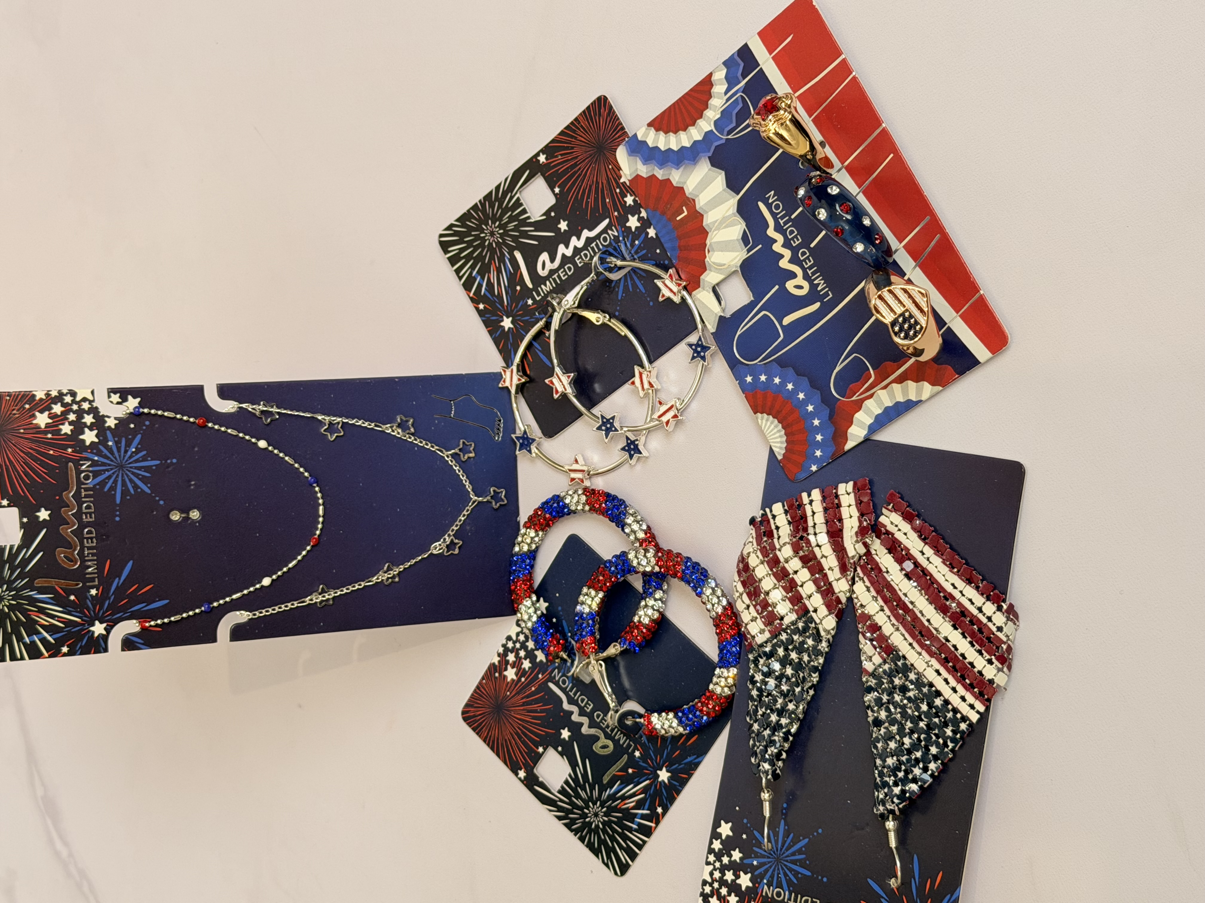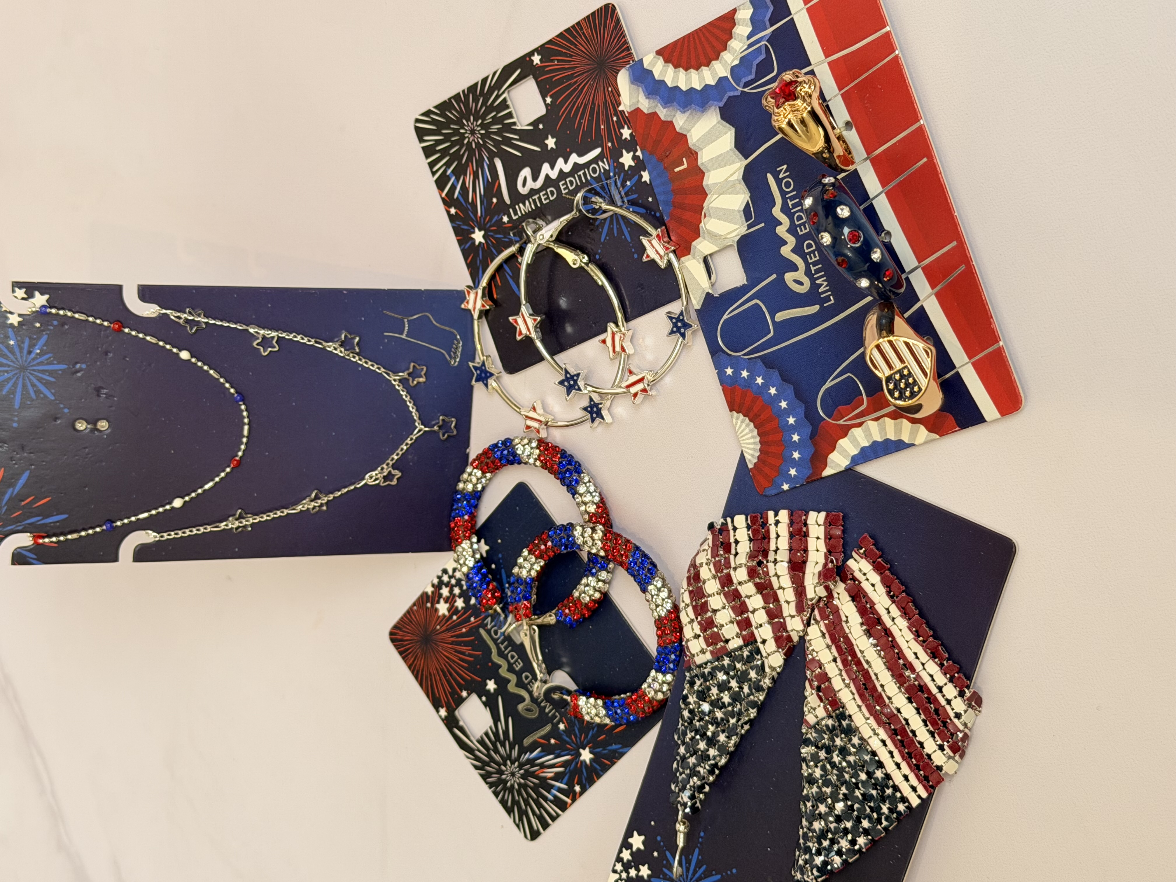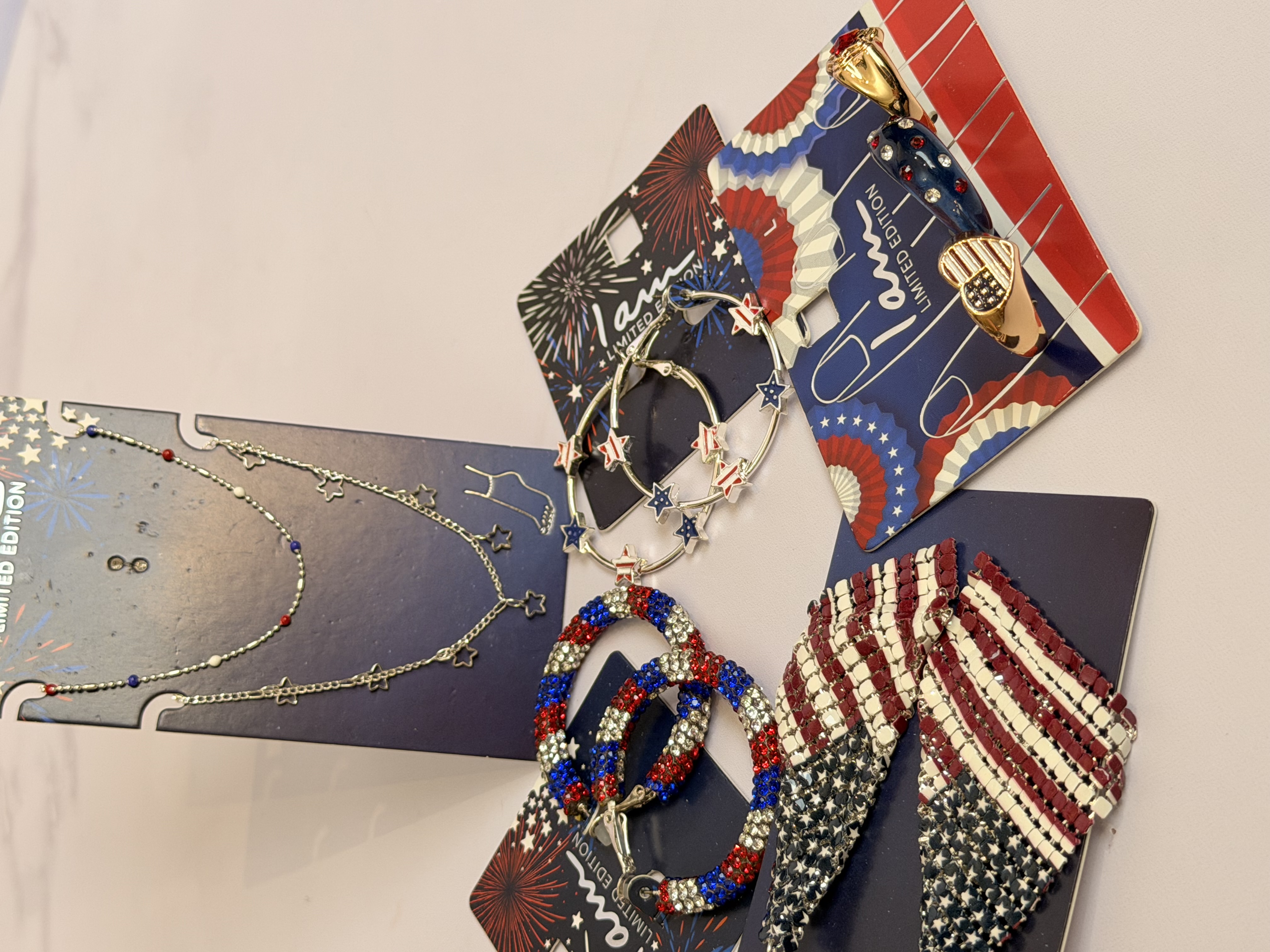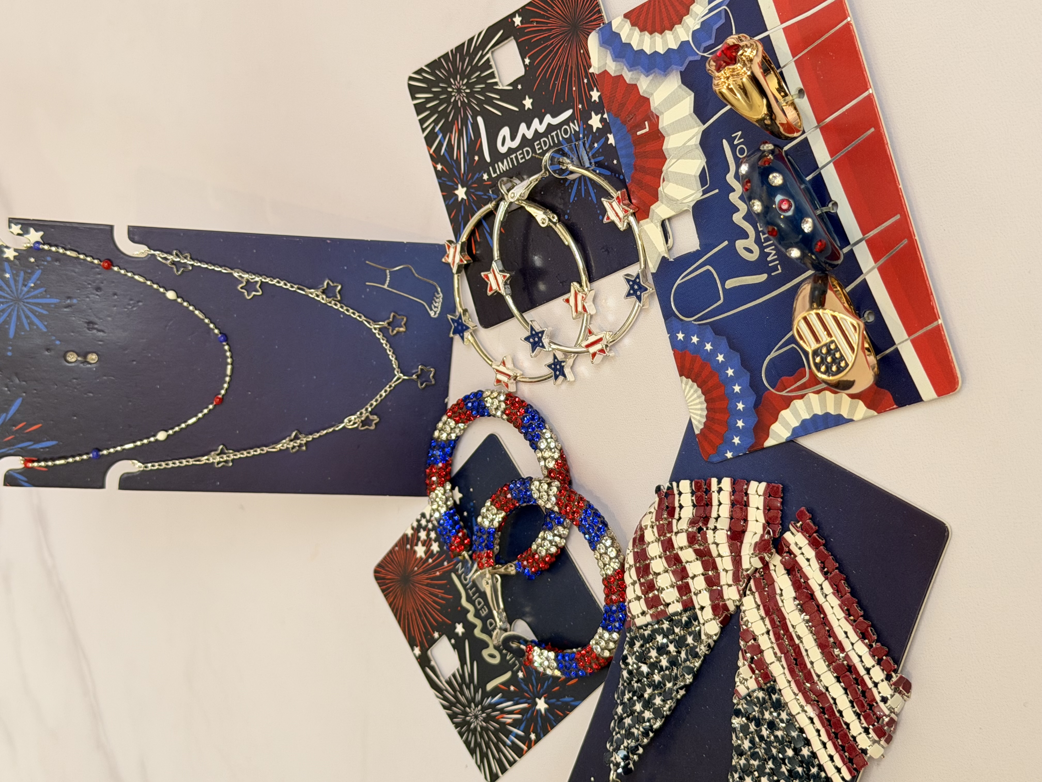 ست زیورآلات دخترانه مدل پرچم امریکا | پک کامل پابند + 3 گوشواره + پک 3 عددی انگشتر خاص با پرداخت اقساطی 4 ماهه