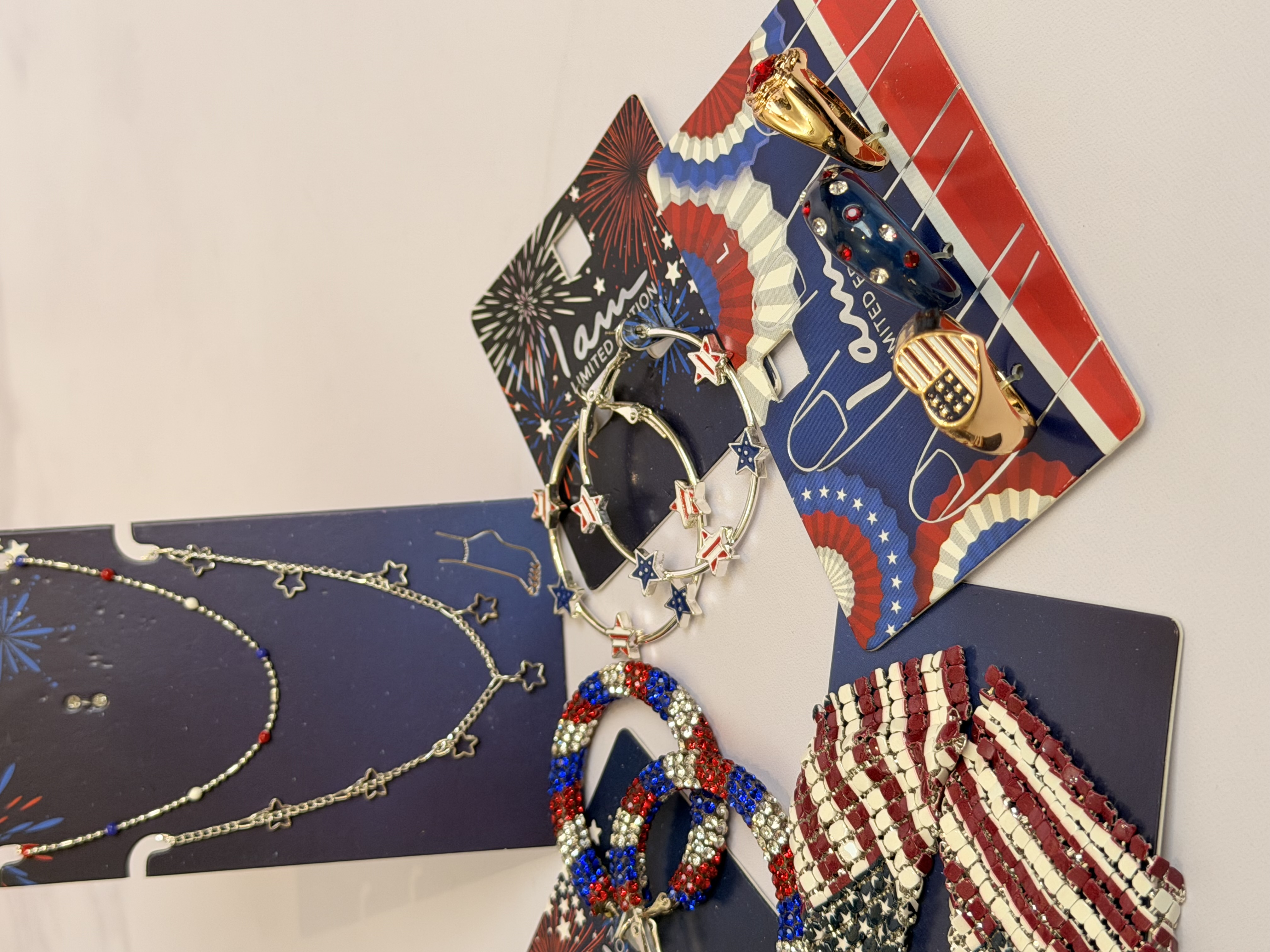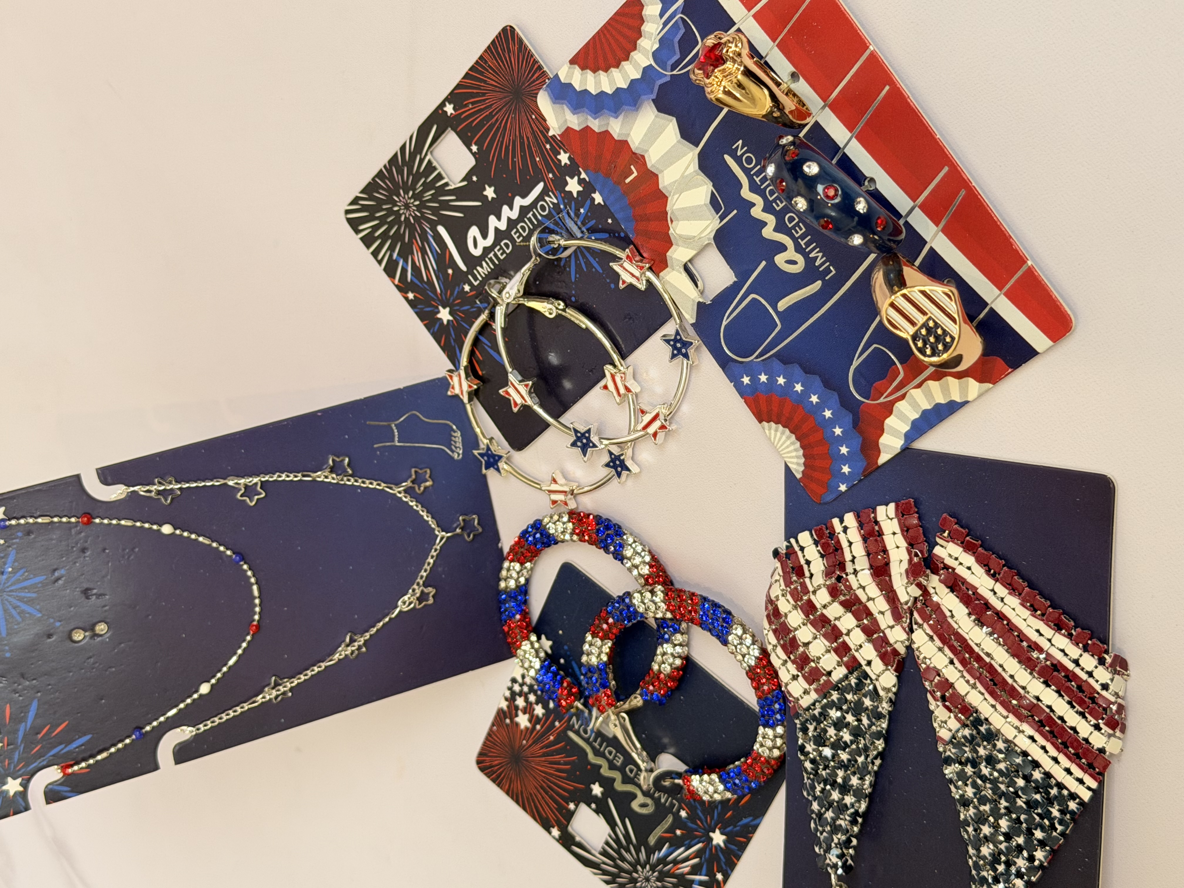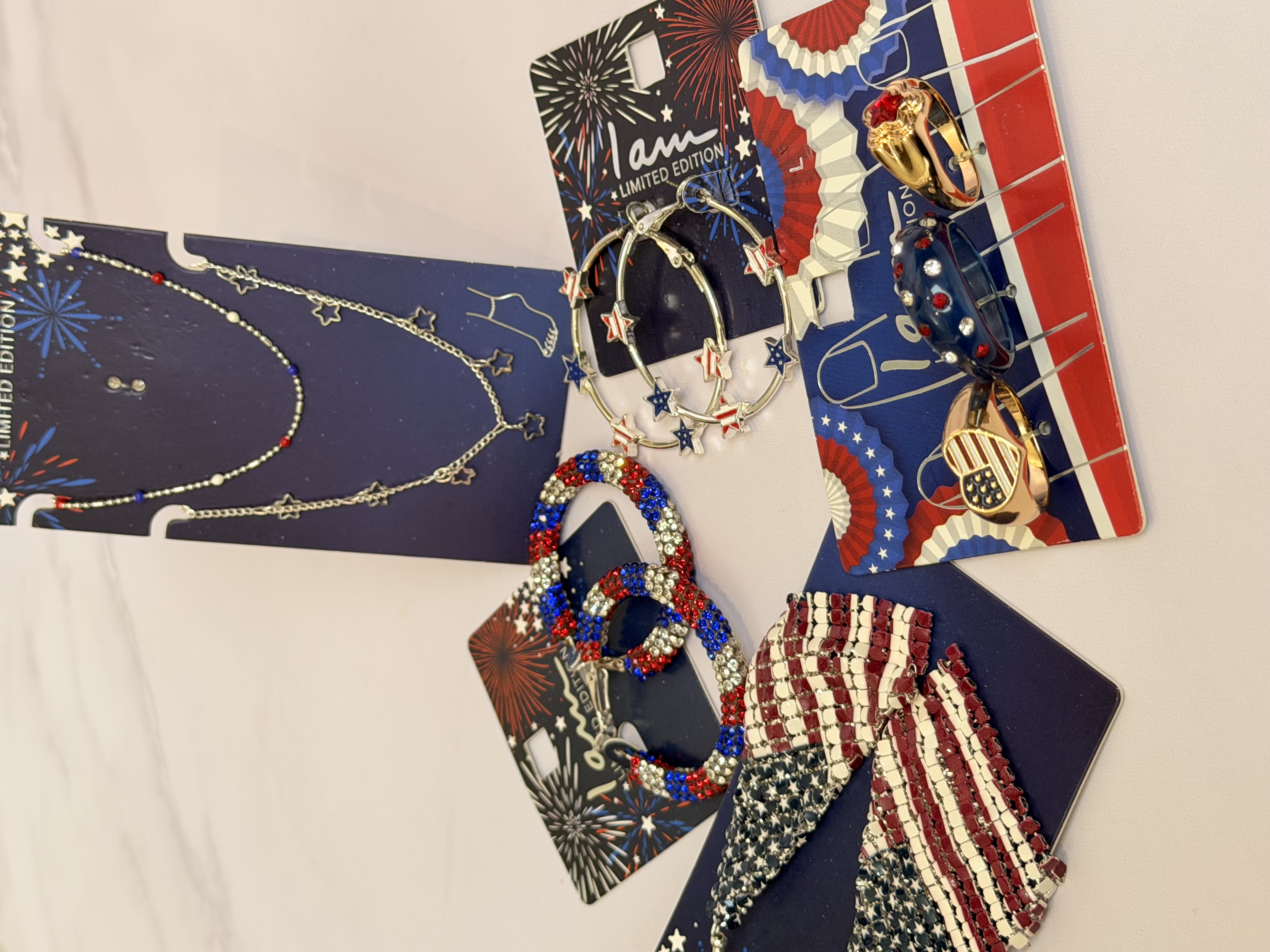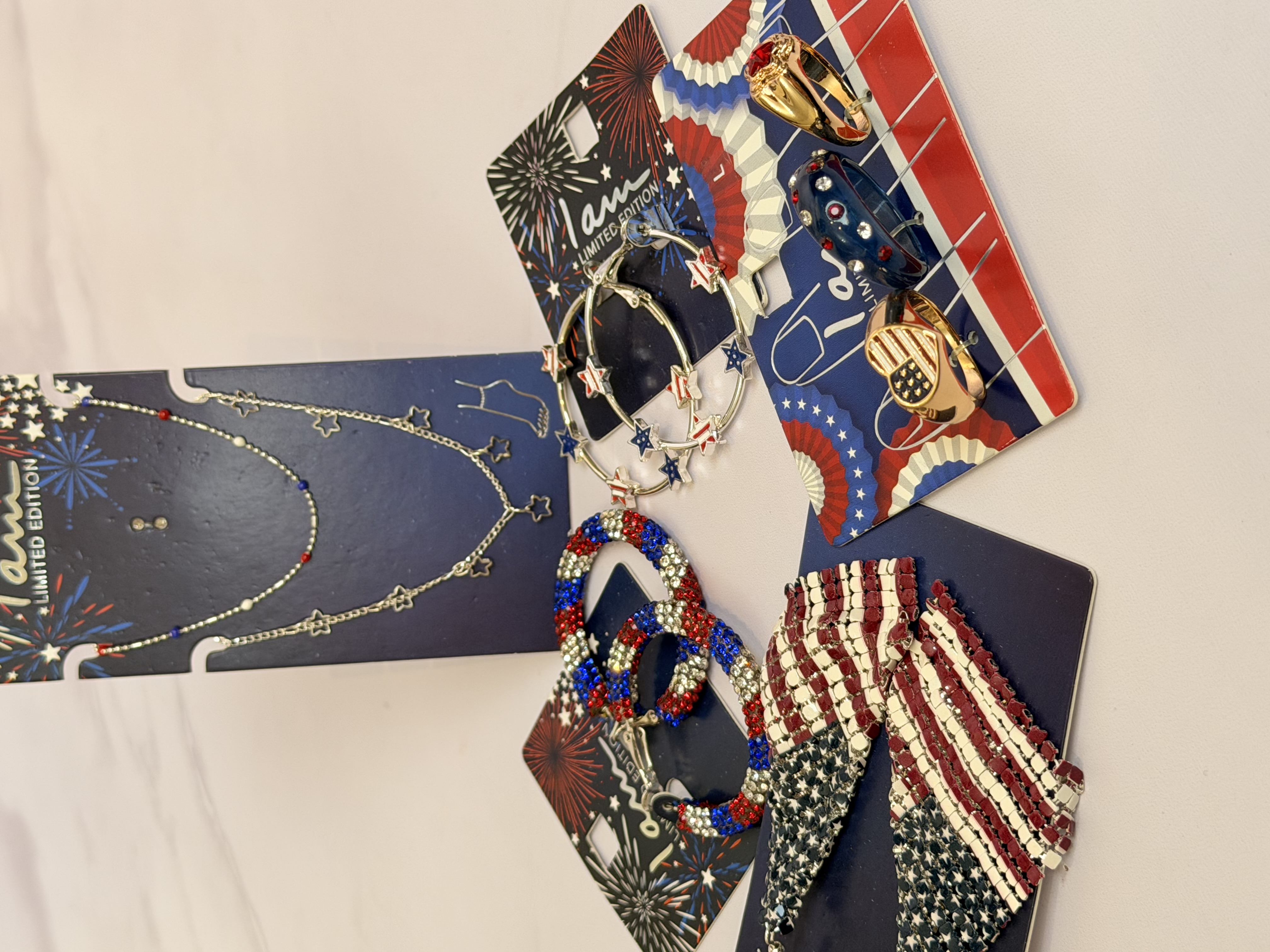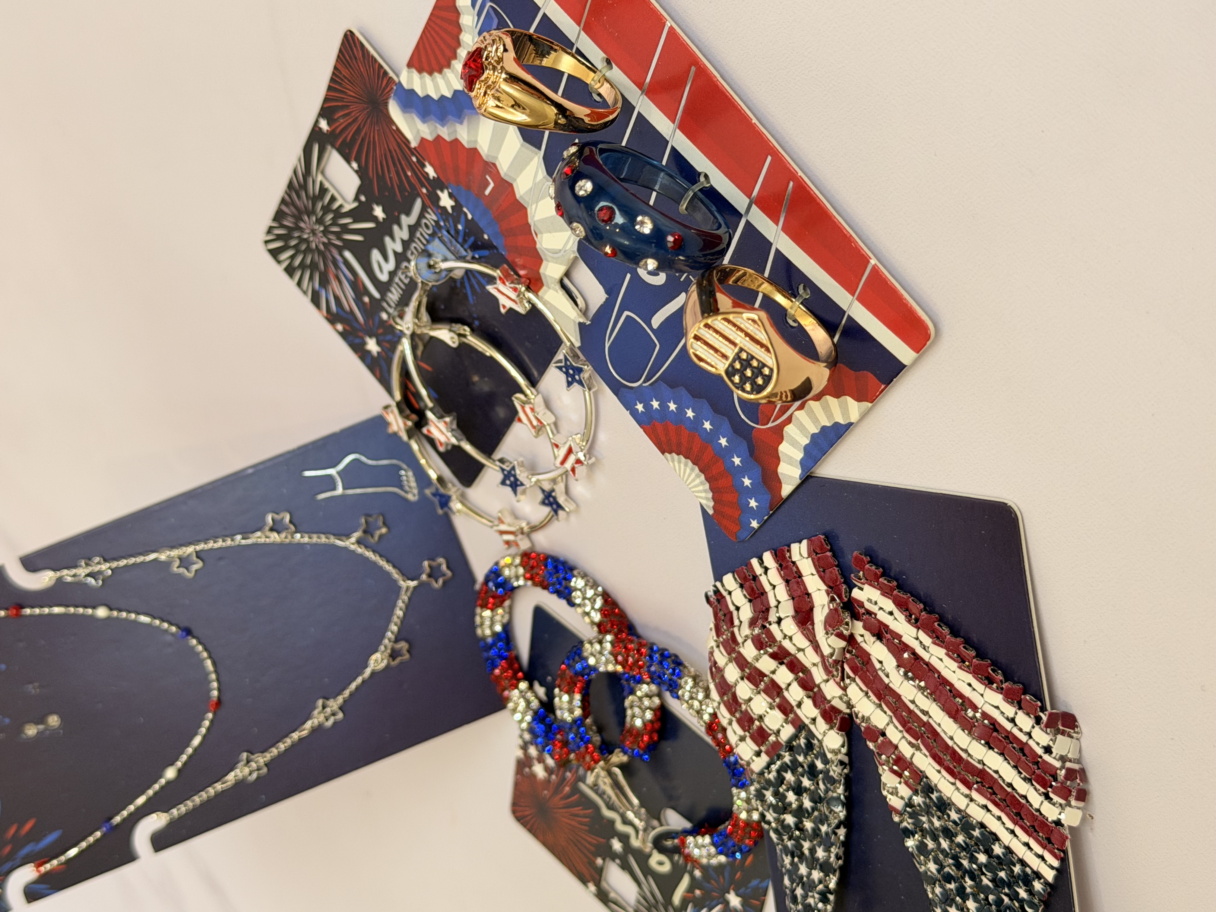 ست زیورآلات دخترانه مدل پرچم امریکا | پک کامل پابند + 3 گوشواره + پک 3 عددی انگشتر خاص با پرداخت اقساطی 4 ماهه